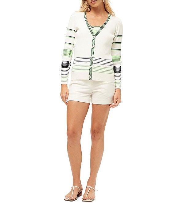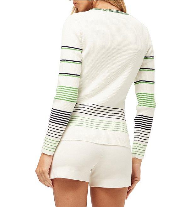 Trina Turk Leylah Knit Stripe Print V-Neck Long Sleeve Cardigain