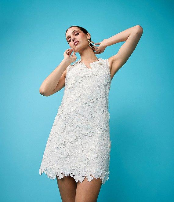 Trina Turk Lovelee 3D Floral Lace V-Neck Sleeveless Scallop Hem Sheath Mini Dress