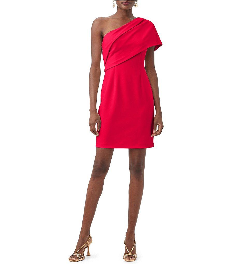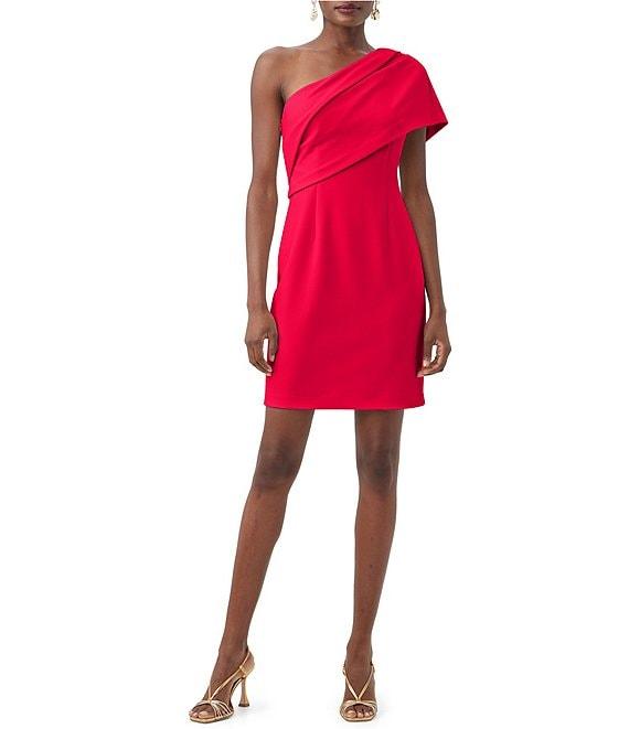 Trina Turk Makina Crepe Knit One Shoulder Short Sleeve Dress