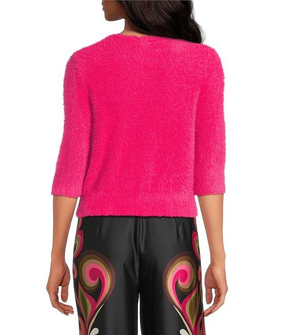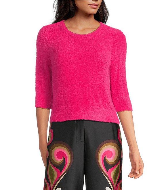 Trina Turk Maliah Fuzzy Knit Round Neck Elbow Sleeve Top