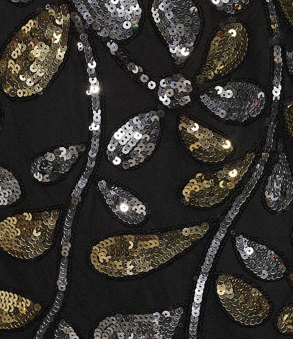 Trina Turk Obelle Sequin Paillette V-Neck Short Sleeve Scallop Trim Dress