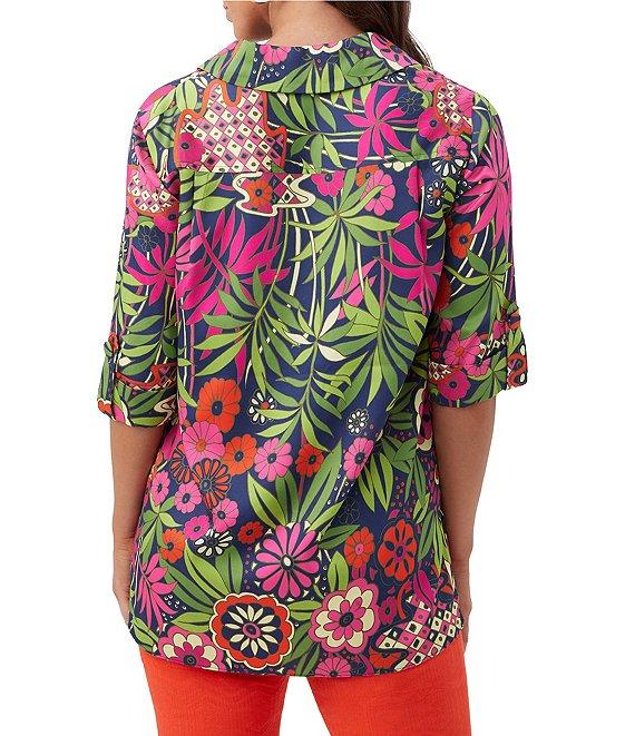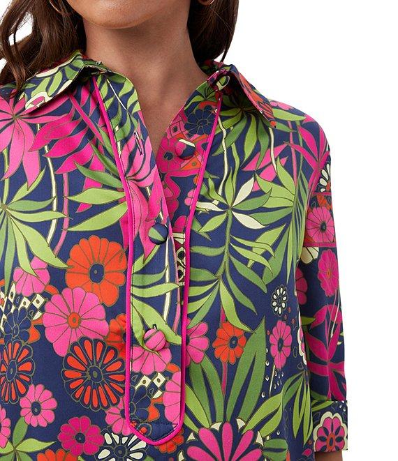 Trina Turk Portrait Floral Print Point Collar Elbow Sleeve Top