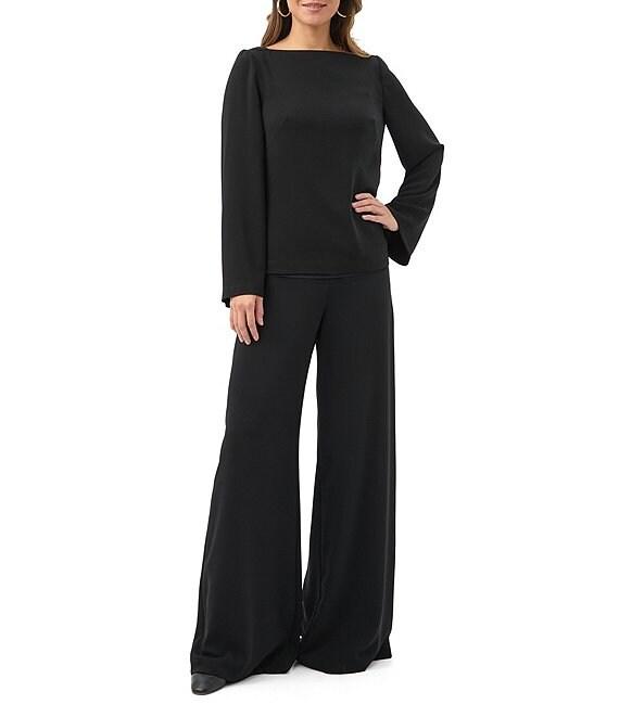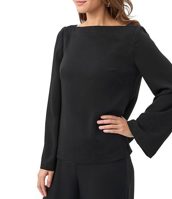Trina Turk Sarese Georgette Coordinating Boat Neck Long Bell Sleeve Top