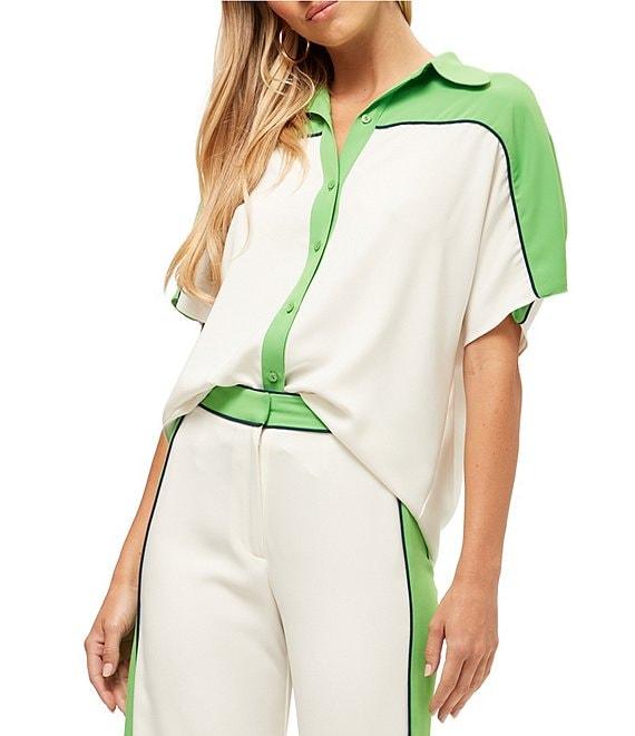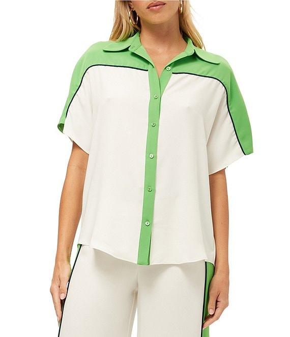 Trina Turk Series 2 Georgette Collar Short Sleeve Button Front Shirt