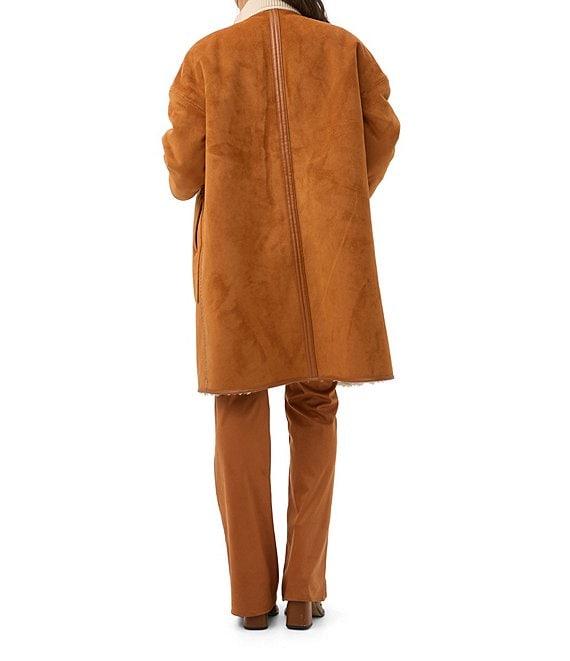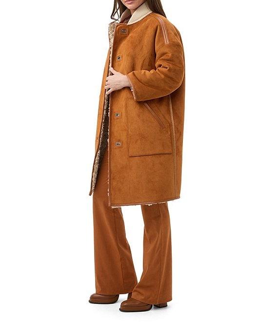 Trina Turk Spartan Reversible Faux Fur Suede Stand Collar Long Sleeve Coat