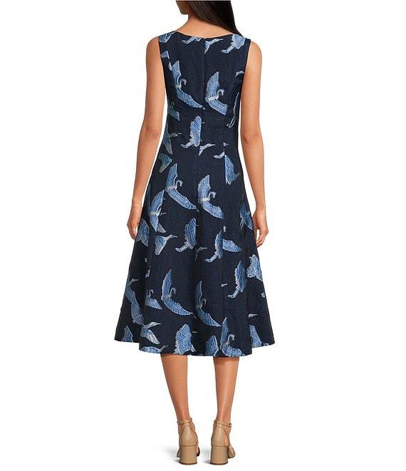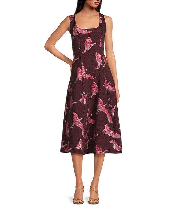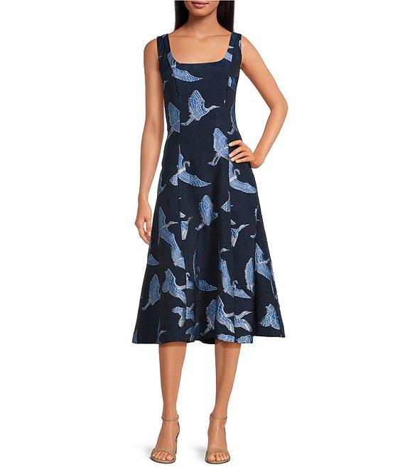 Trina Turk Valor Printed Jacquard Square Neck Sleeveless A-Line Midi Dress