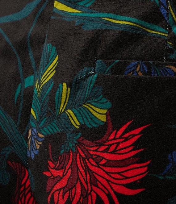 Trina Turk Westport Velveteen Floral Print Flat Front Flare Leg Pants