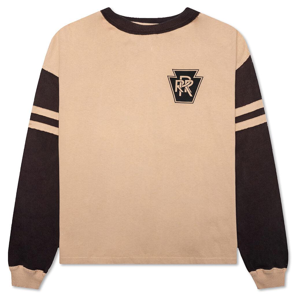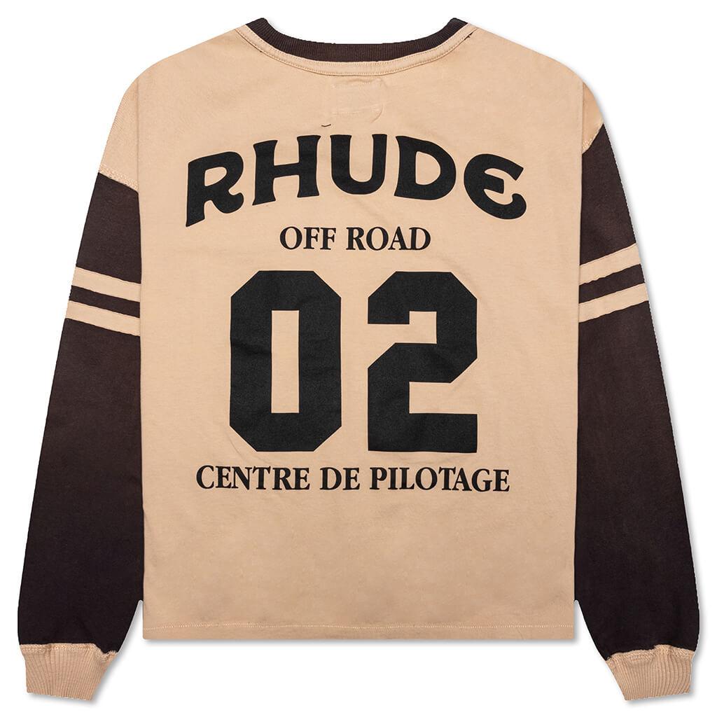 The Rhude Triple R Contrast L/S Tee is a must-have graphic tee for any collection. Taking on a cotton construction, the silhouette features a crew neckline and is vintage-washed, a signature aspect of Rhude tees. A two-striped sleeve gives the tee a sporty look + screen-printed branding and graphics wrap up the remainder of the design. 100% Cotton Crew neckline Vintage-washed Ribbed trims Screen-printed logo branding Screen-printed graphics Style No: RHPF23TT120121191691