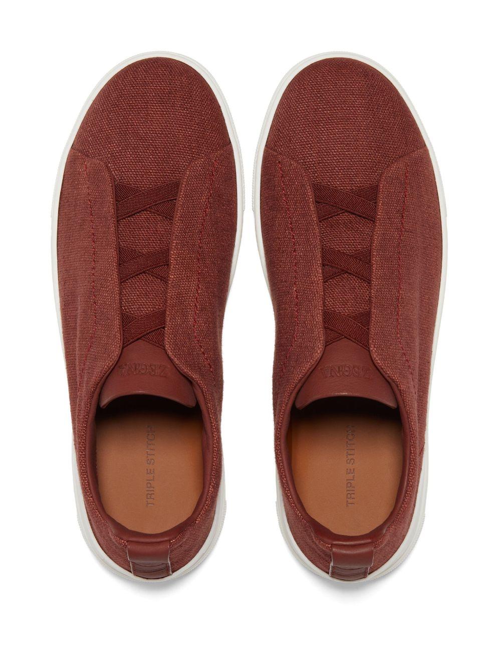 Zegna Triple Stitch sneakers | Red | Cotton/Linen/Flax/Bovine Split Leather/Leather/Rubber | Slip-On | Sneakers | Shoes | Men