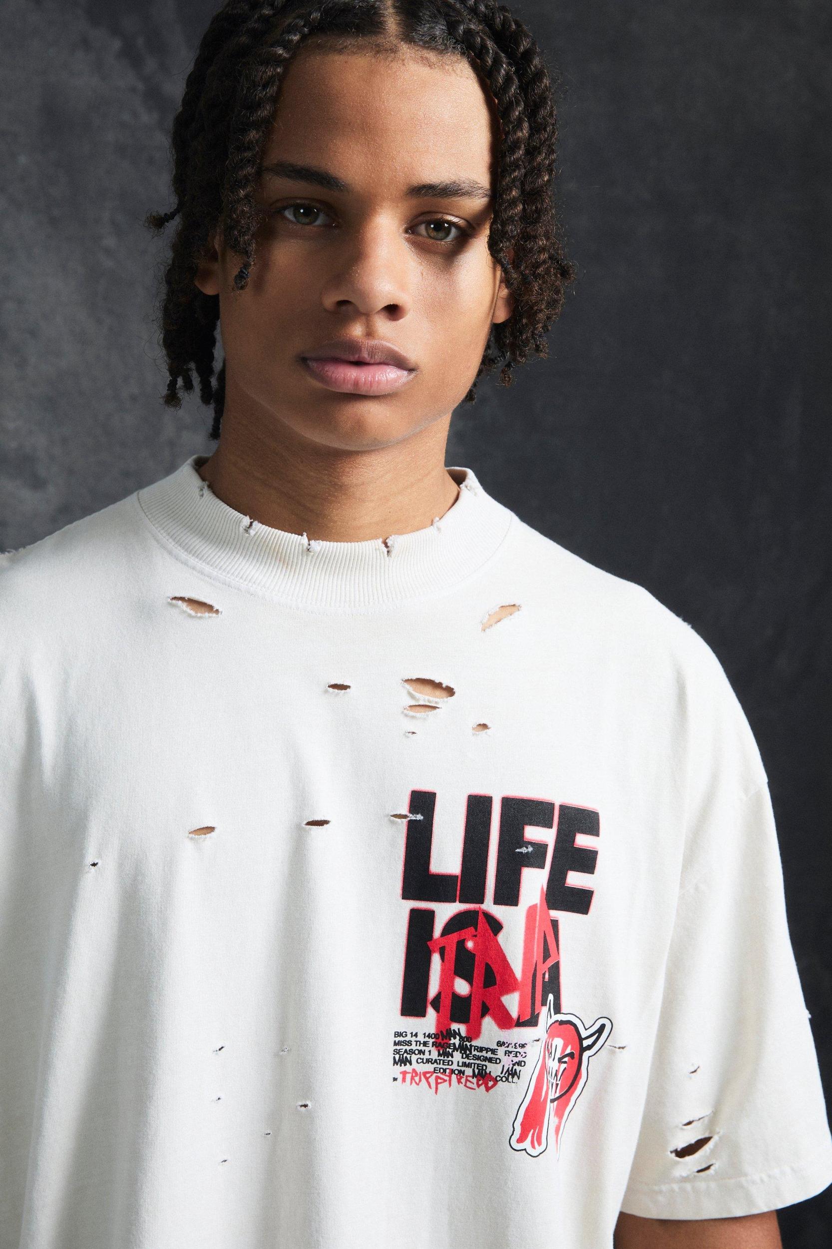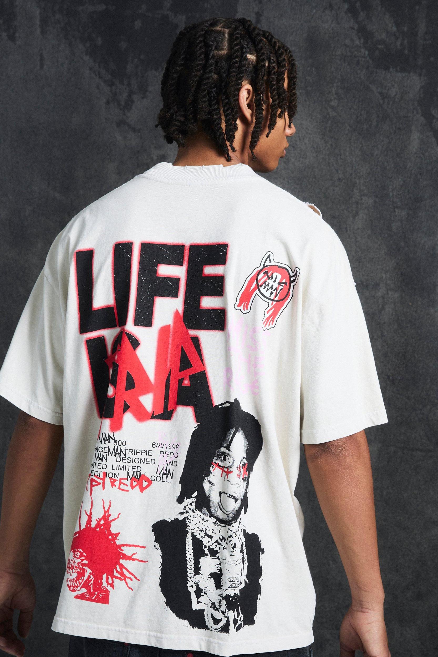 Choose the dark, edgy aesthetic of 1400 with our fresh collaboration with boohooMAN | Trippie Redd. This collection offers a versatile range of bold pieces that push the limits of streetwear. From the graphic horn caps to the zip off leg denim jeans, each item embodies Trippie's evolving style with exaggerated outfits and unique details like zip-off sleeves and legs. Opt for a Y2K vibe and layer up in our oversized hoodies. Take it to the next level with statement items like studded trousers and embroidered socks. Available in sizes XS to XXL, this collection is designed for those who aren't afraid to embrace the dark side of fashion.