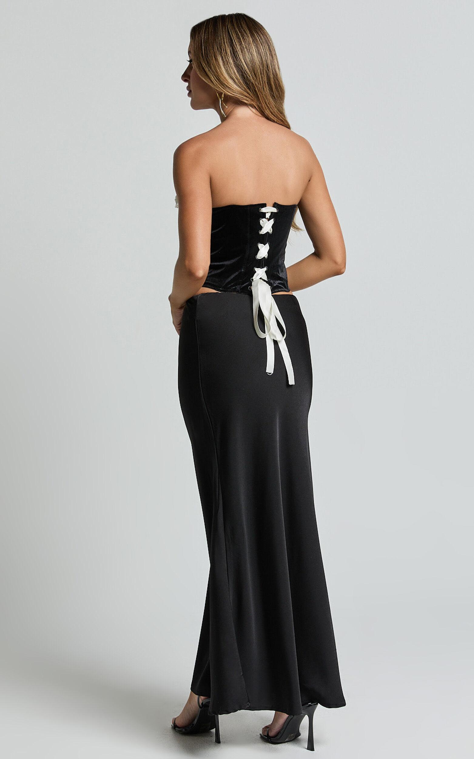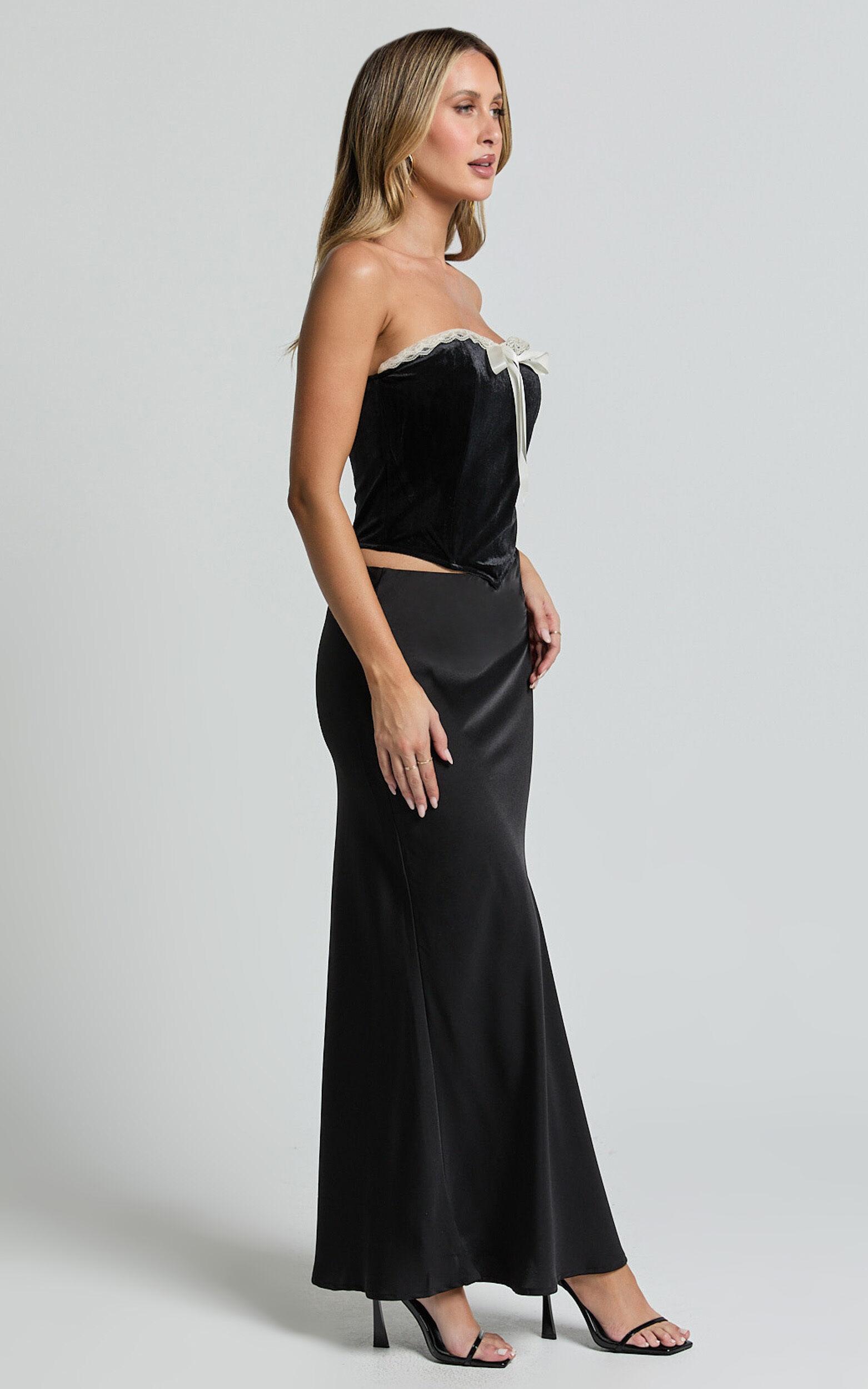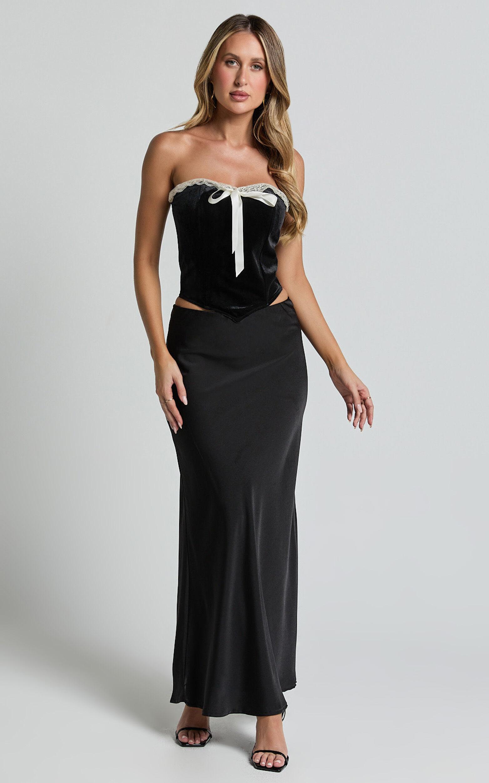 Trisha Corset - Lace Trim Bow Detail Corset in Black and Cream