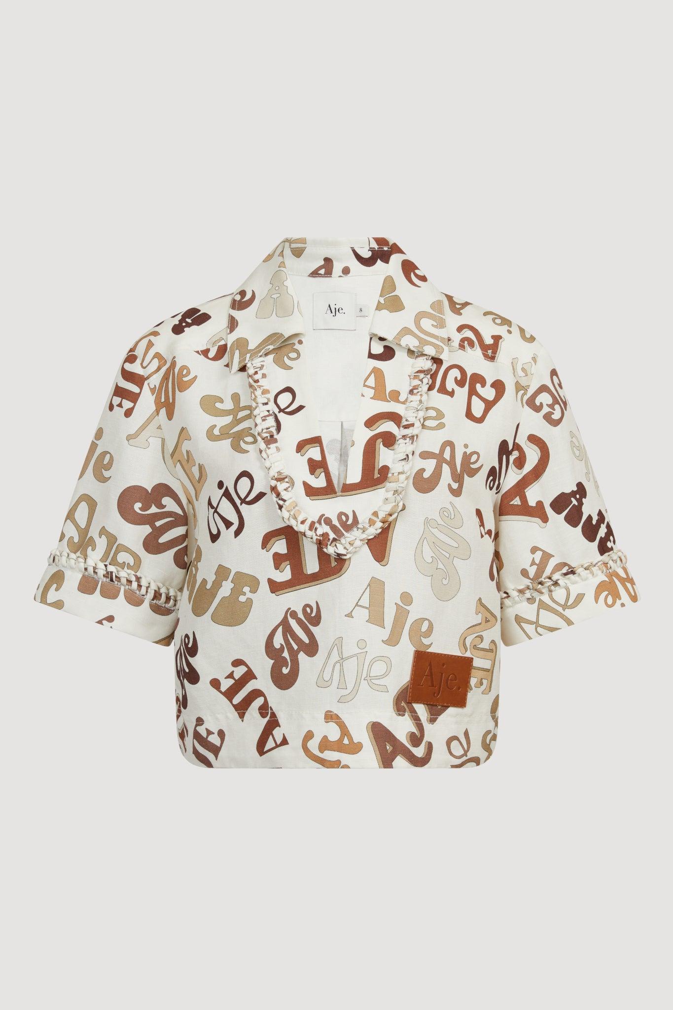 Tropez Crop Shirt-BROWN RETRO LOGO / 4