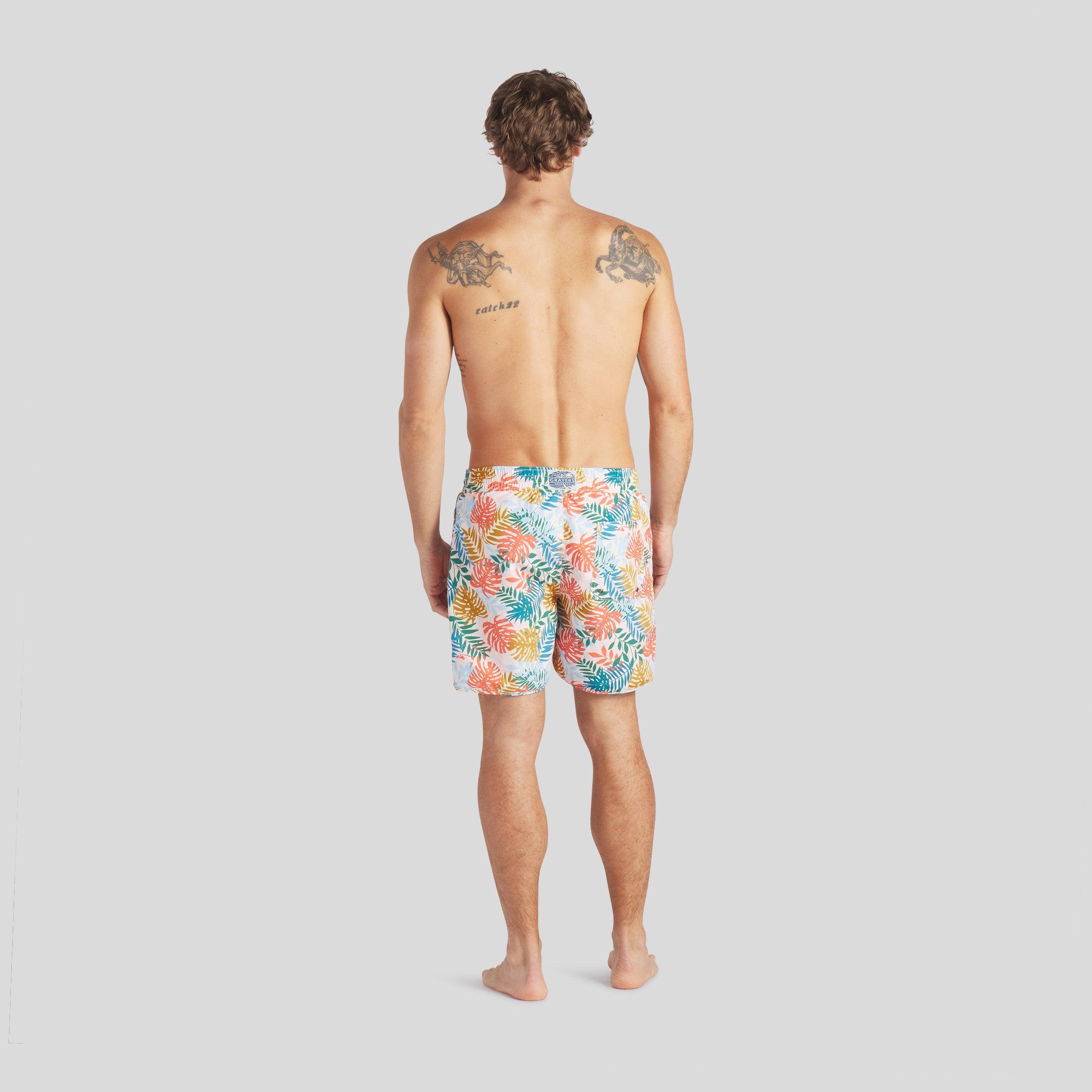 Our sustainable, eco-friendly swimwear collection is here. Crafted with 100% recycled polyester from discarded PET-bottles, and designed with original Grayers prints, this quick-drying swim trunk allows you to ease into an apres-swim comfort. Model: Chris is wearing size medium and is 6'. ----Details---- 8" Inseam On seam mesh-lined side pockets Elastic waistband metal-finished drawcord Rear pocket with velcro closure and metal eyelets for water draining Retro inspired curved hem finished with self fabric binding Breathable quick drying fabric and mesh lining Imported ----Materials---- 100% Recycled Polyester ----Size & Fit---- Measuring Method: All measurements are in inches and based on a “flat” garment, as shown below. For comparison with one of your existing garments, please lay garment on a flat surface and follow the key measurement points. ----Care---- Machine Wash Cold Separately Do Not Use Chlorine Bleach Do Not Tumble Dry Do Not Iron Line Dry