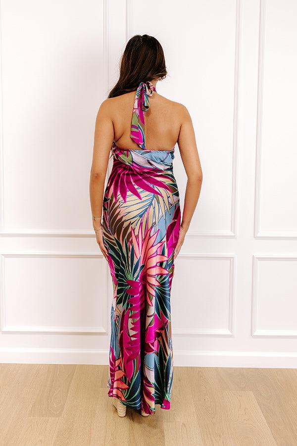 - Bring tropical sweetness to your closet with this chic satin dress! Featuring a playful print, it's the perfect pick for getaway looks or casual days with island-inspired charm.