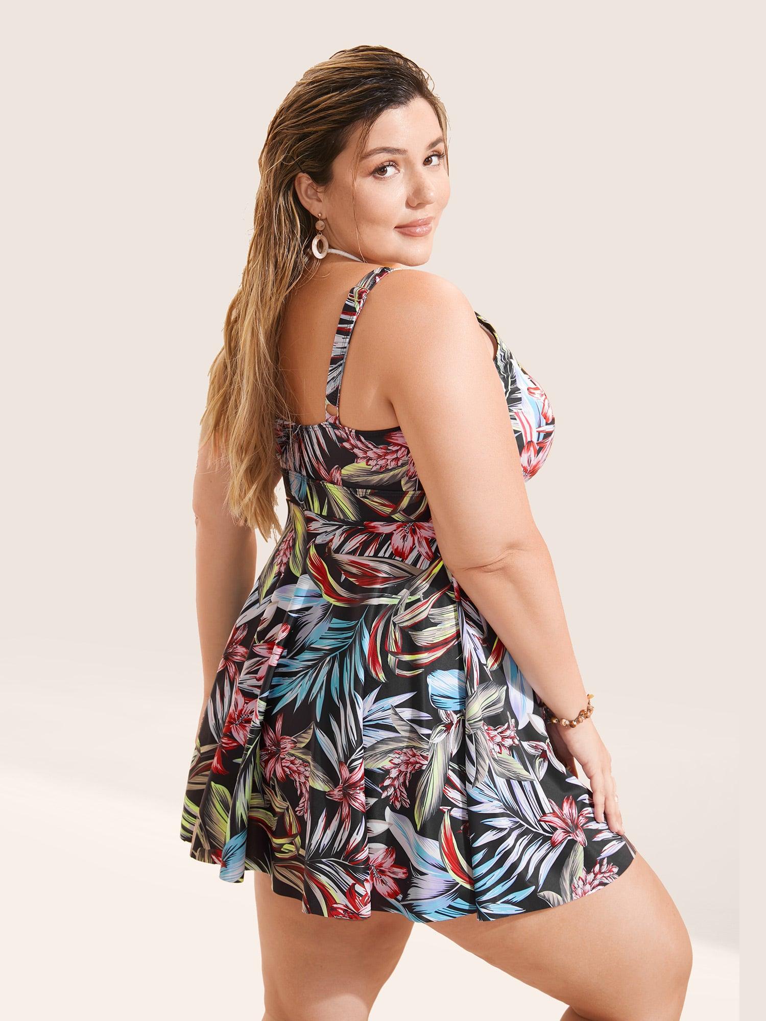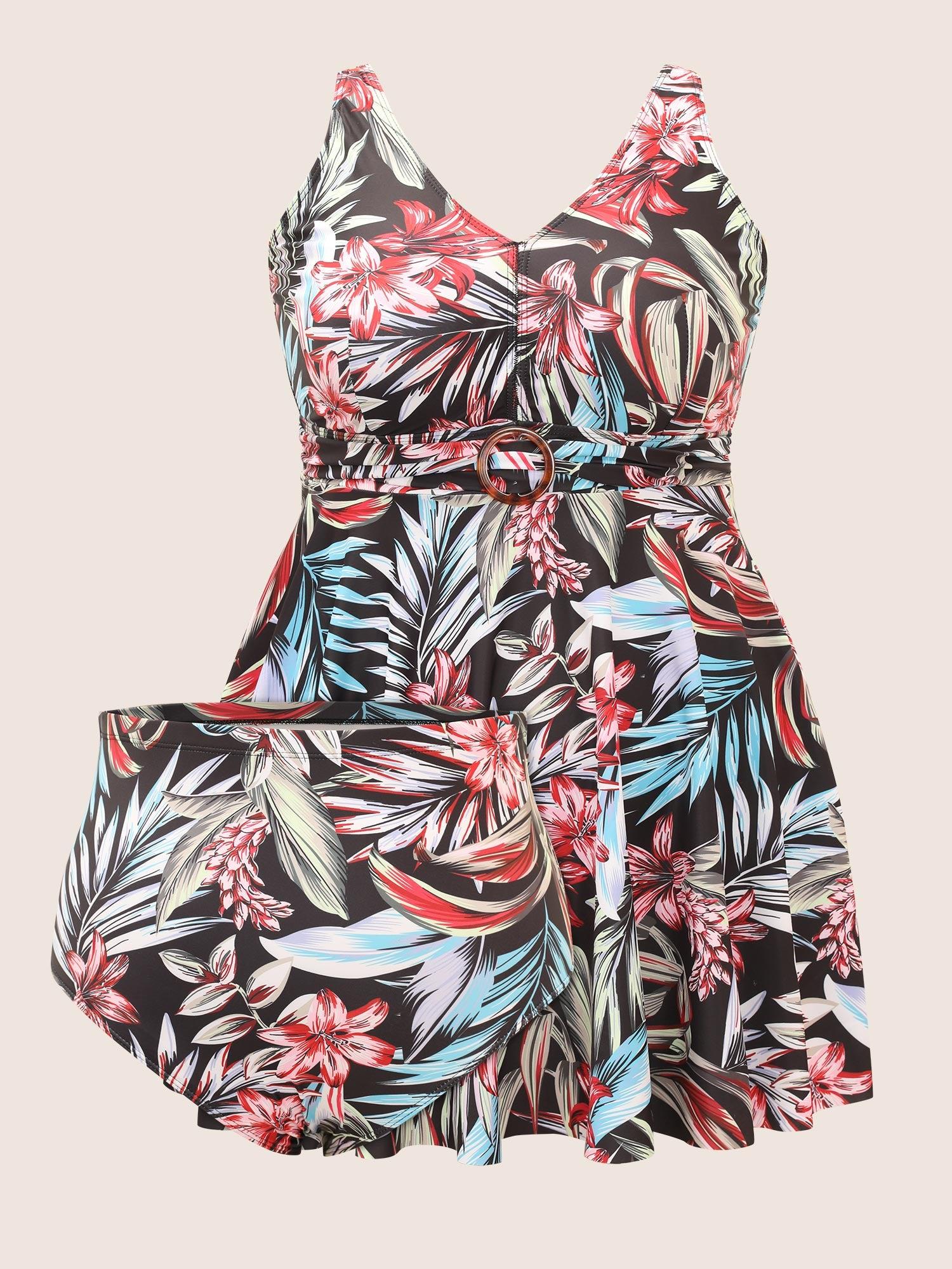 Shop Tropical Print Buckle Detail Swim Dress now and redefine your style with confidence at BloomChic. Tailored for mid and plus-size women. This trendy Swimwear Women, sizes 10-30. Season:Summer;Color:BlackFlower;Bra Type:Wireless;Coverage:Full;Waist Design:High Rise;Neckline:V-neck;Sleeve Type:Sleeveless;Pattern Type:Tropical;Prints:Tropical;Pocket:No-pocket;Belt:Belt;Chest pad:Removable Padding;Lining:Lining