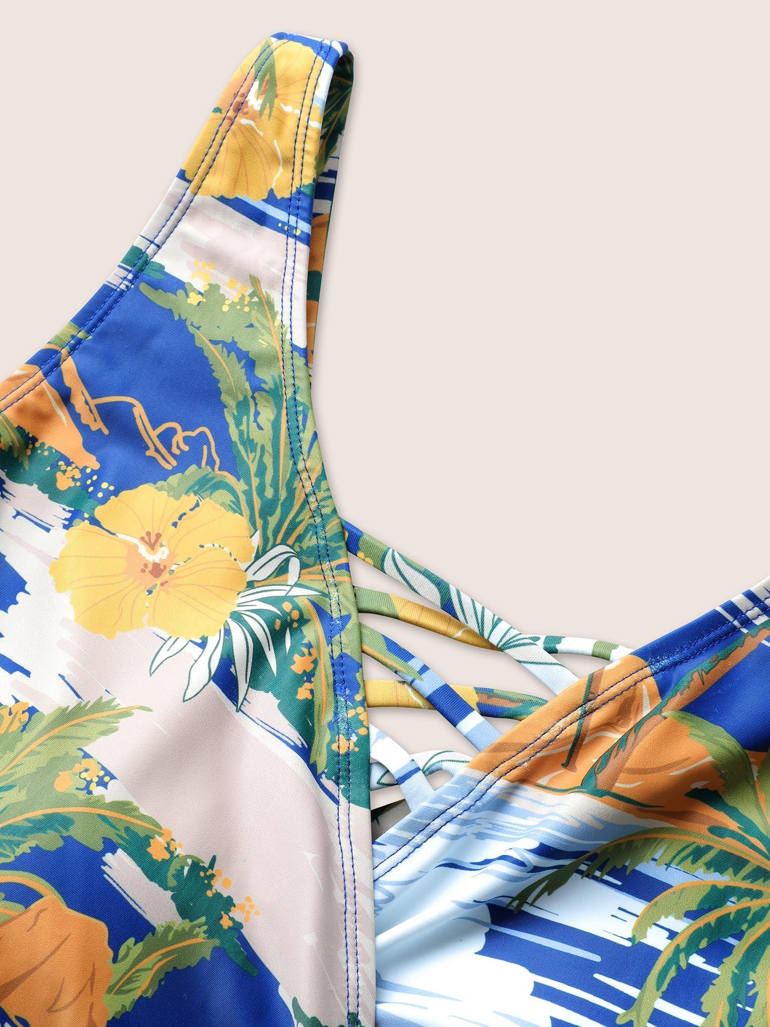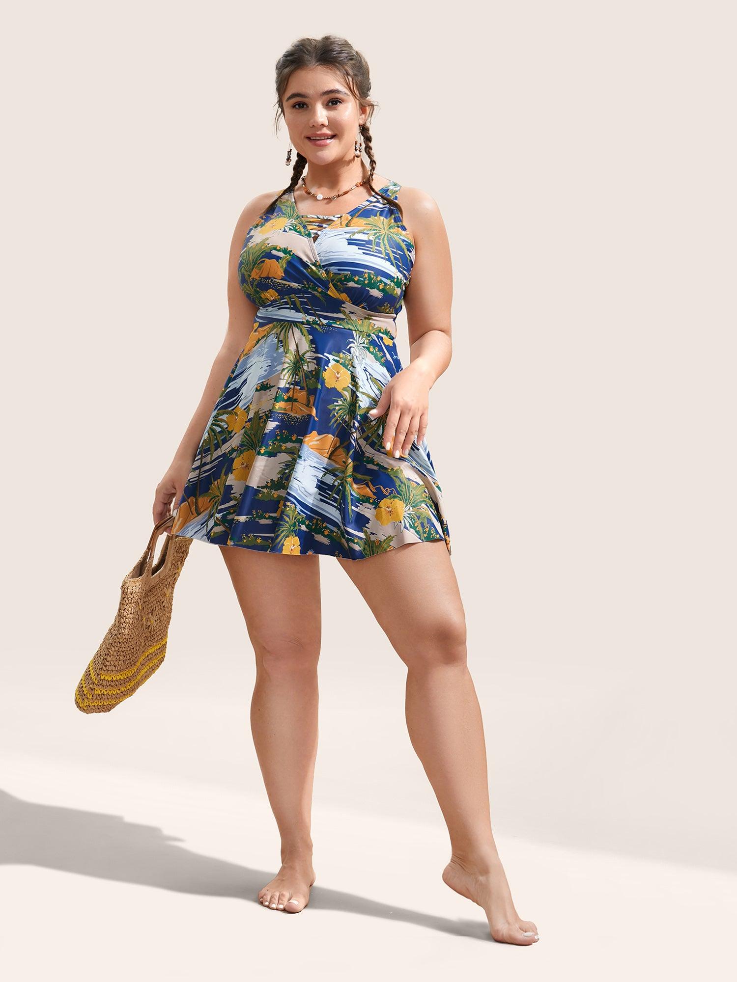 Shop Tropical Print Crisscross Cut Out Swim Dress now and redefine your style with confidence at BloomChic. Tailored for mid and plus-size women. This trendy Swimwear Women, sizes 10-30. Season:Summer;Color:Multicolor;Bra Type:Wireless;Coverage:Full;Waist Design:High Rise;Neckline:V-neck;Sleeve Type:Regular Sleeve;Pattern Type:Tropical;Pocket:No-pocket;Belt:No-belt;Chest pad:Removable Padding;Lining:Lining