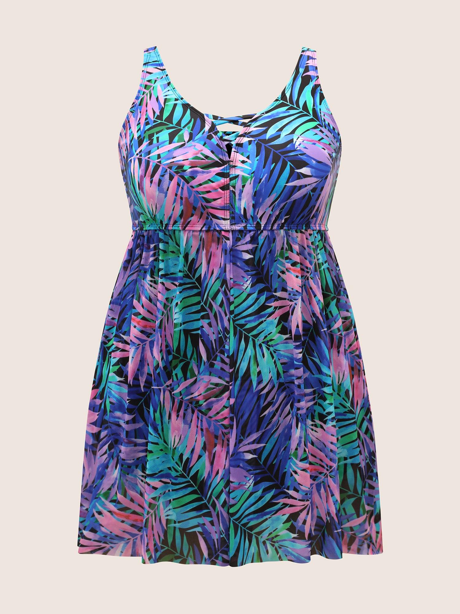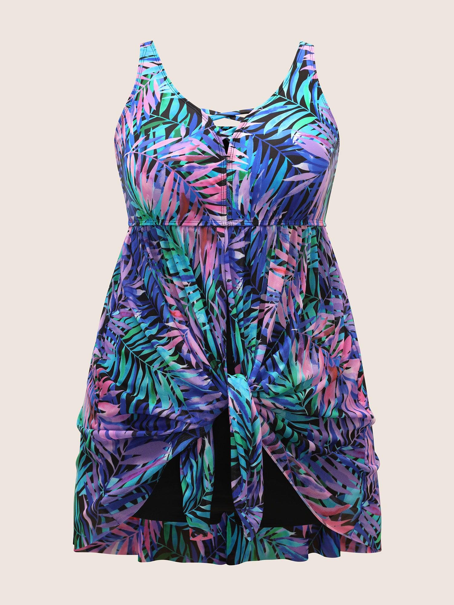 Shop Tropical Print Crisscross Split Hem Swim Dress now and redefine your style with confidence at BloomChic. Tailored for mid and plus-size women. This trendy Swimwear Women, sizes 10-30. Season:Summer;Color:Multicolor;Style:Beach;Cup Type:Removable cups;Waist Design:High Rise;Neckline:Heart neckline;Sleeve Type:Sleeveless;Pattern Type:Tropical;Prints:Tropical;Details:Contrast, Cross straps, Slit;Pocket:No-pocket;Belt:No-belt;Chest pad:Removable Padding;Lining:Lining;Closure Type:Tie belt