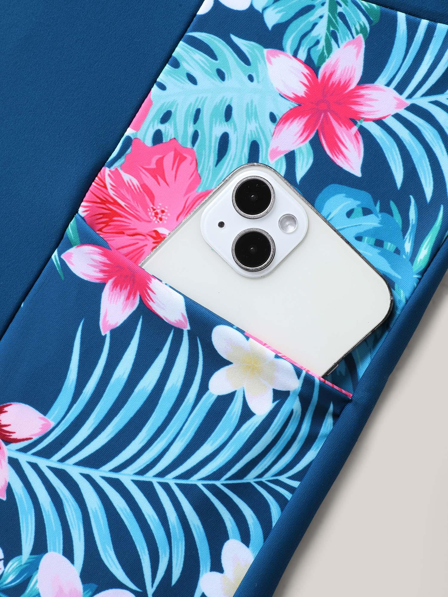 Tropical Print Side Pockets Contrast Swim Bottoms Female