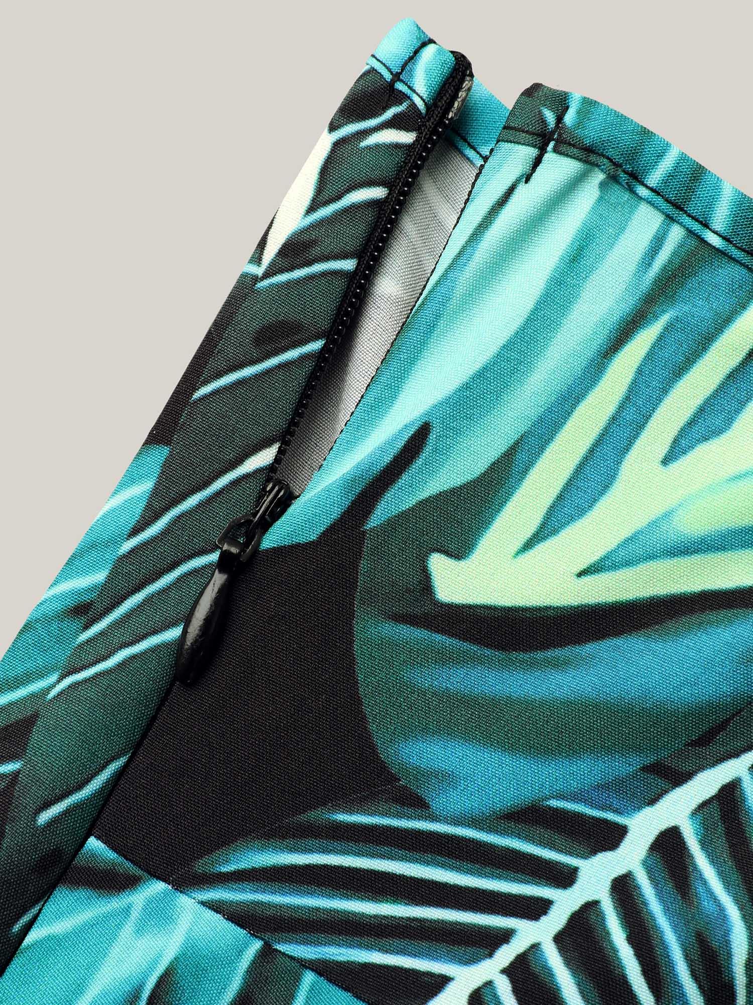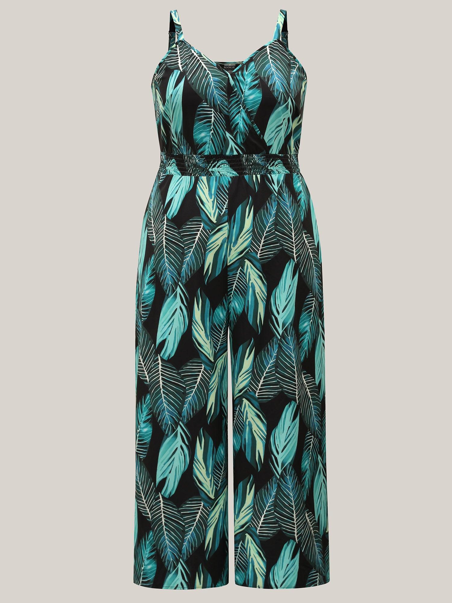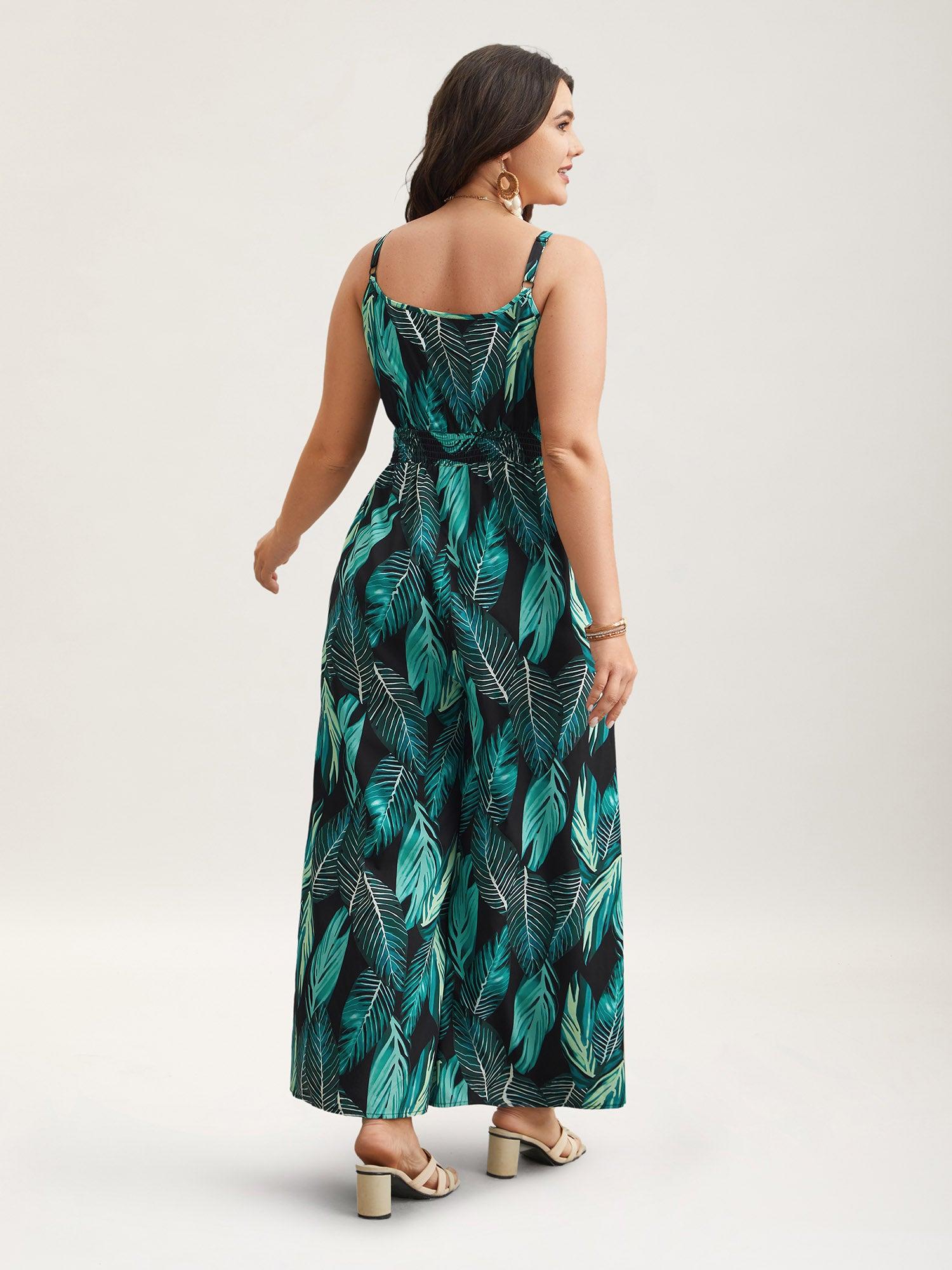 Tropical Print Waist-Cinched Pockets Jumpsuit Female
