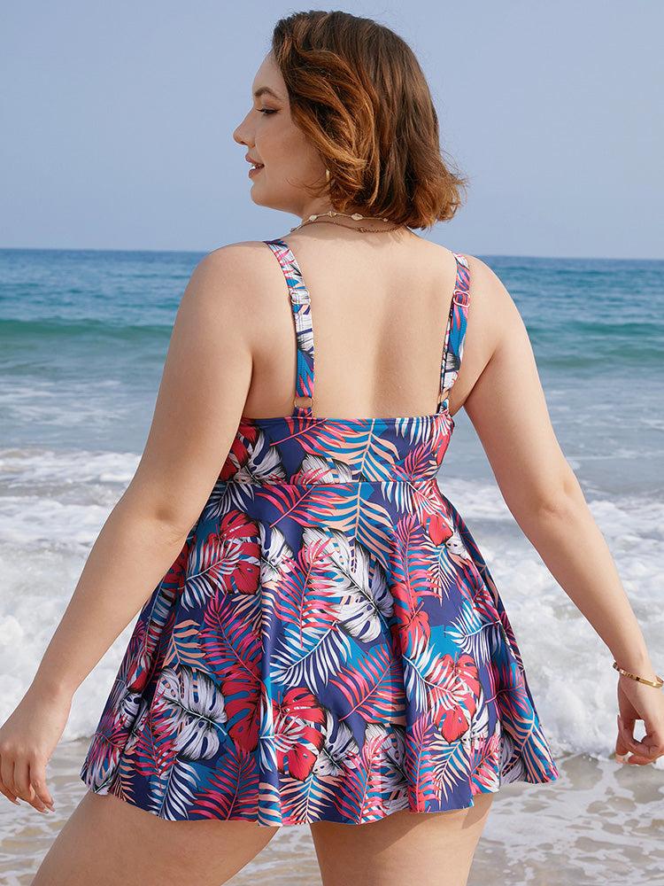 Shop Tropical Print Wrap Ruffles Crisscross Swim Dress now and redefine your style with confidence at BloomChic. Tailored for mid and plus-size women. This trendy Swimwear Women, sizes 10-30. Season:Summer;Color:Indigo;Style:Vacation;Bra Type:Wireless;Coverage:Full;Neckline:V-neck;Sleeve Type:Sleeveless;Pattern Type:Tropical;Details:Printed, Tummy control, A-line, Adjustable Straps, Cross straps, Keyhole;Pocket:No-pocket;Belt:No-belt;Chest pad:Removable Padding;Lining:Lining
