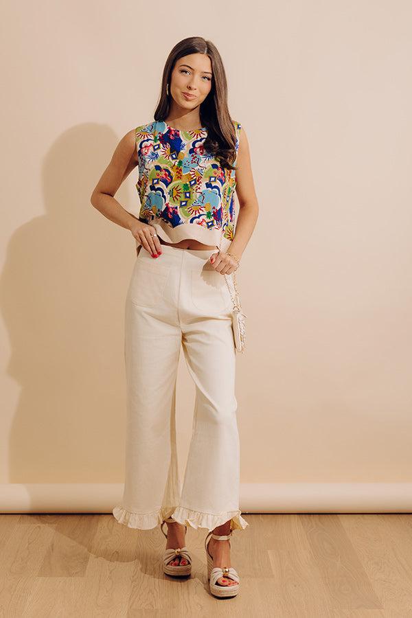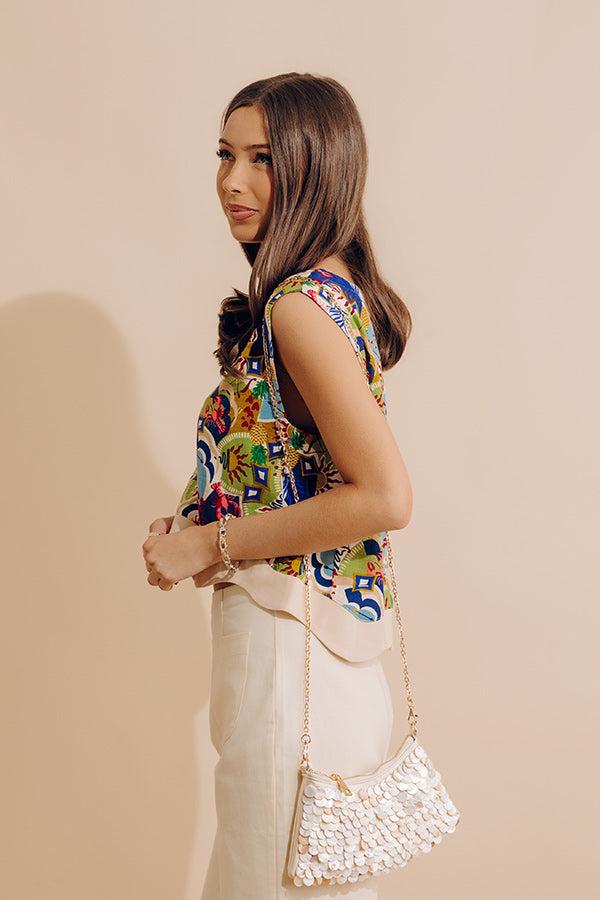 - Step into tropical charm with this sweet top! Its adorable beach-themed print and sweet scalloped details will have you falling in love with seaside style.