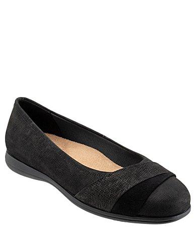 From Trotters, the Danni Nubuck Suede Slip On-Flats feature:Nubuck suede upperSlip-on Synthetic liningRemovable cushioned footbed with arch supportMolded unit rubber outsoleApprox. 1 heel heightImported.