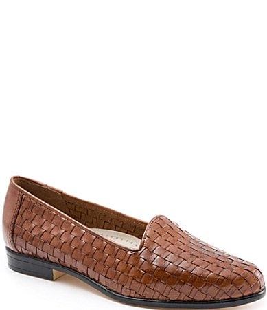 From Trotters, the Liz Woven Leather Slip-On Loafers feature:basketweave leather upperslip-on stylingunlined constructionSoft cloth lining on the vampCushioned polyurethane footbed with stitchless embossed designLightweight flexible rubberized soleapprox. 0.625 stacked heelImported.