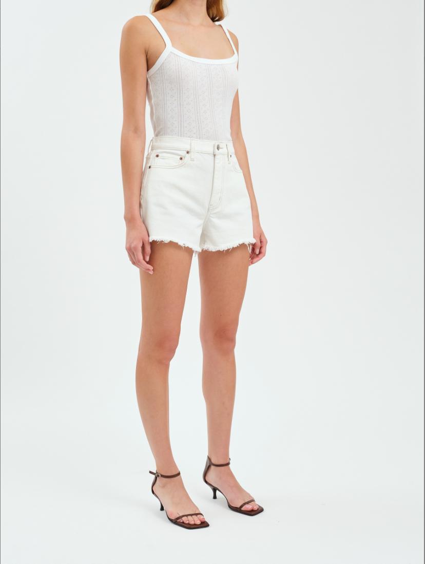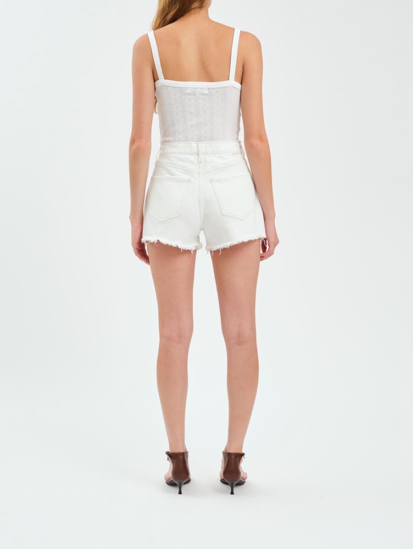 These stylish vanilla denim shorts are the perfect summer staple, featuring a high-waisted design for a flattering fit. With a trendy frayed hem and classic five-pocket styling, they offer a casual yet chic look that's ideal for warm-weather outings. Pair them with a fitted top or a breezy blouse for a versatile outfit that transitions effortlessly from day to night. Embrace comfort and style with these must-have shorts this season!