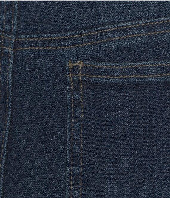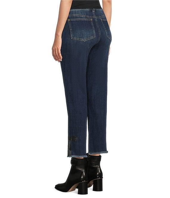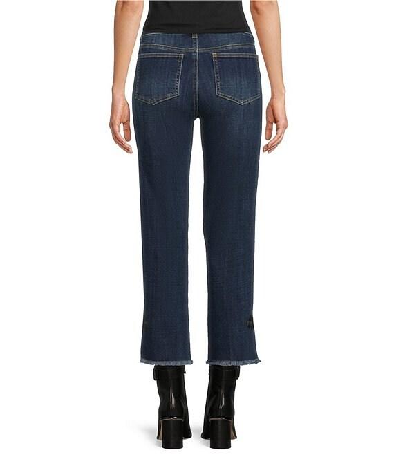 From Tru Luxe Jeans, these jeans feature: Denim fabrication Straight leg silhouette Belt loops 5 pocket styling pockets Bow detail at hems Crop length Front zipper and button closure Approx. 26" inseam Cotton/spandex Machine wash cold/tumble dry low Imported.