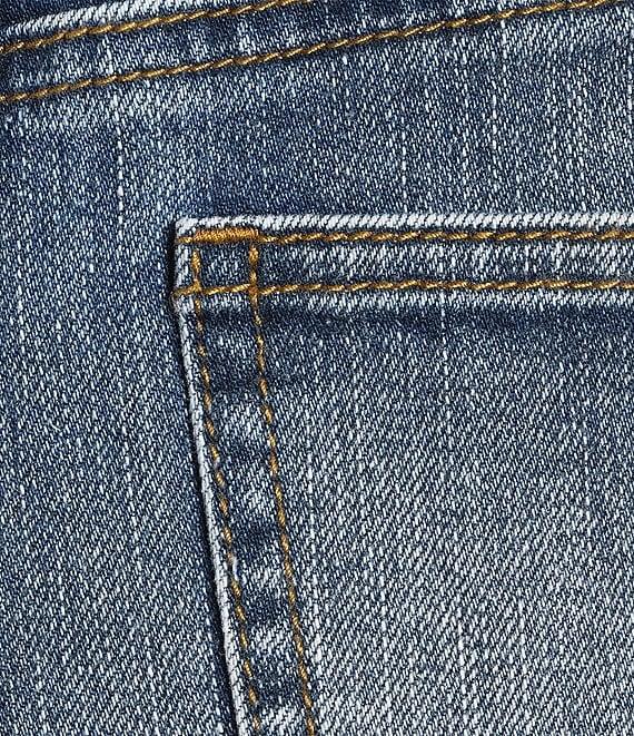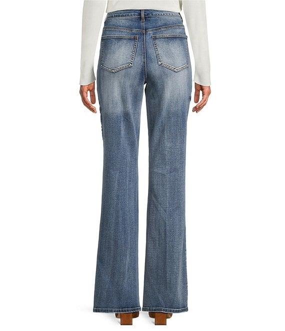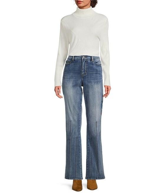 From Tru Luxe Jeans, these jeans feature: Denim fabrication Boot cut silhouette Belt loops 5-pocket styling Floral embroidered Pintucked detail Straight hemline Front button/zip closure Approx. 32" inseam: 22" leg opening Cotton/polyester/spandex Machine wash cold/tumble dry low Imported.