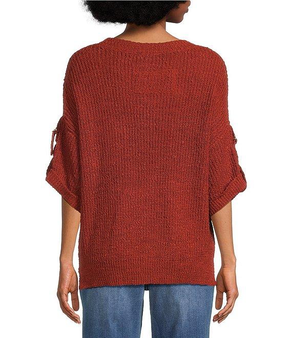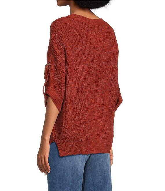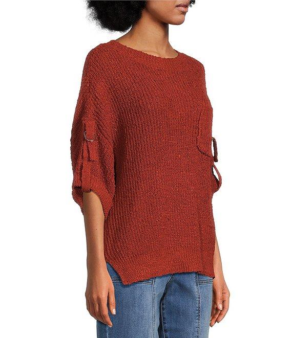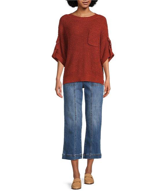 Tru Luxe Jeans Knit Round Neck Elbow Roll Sleeve Top