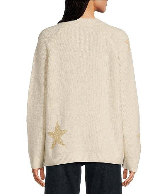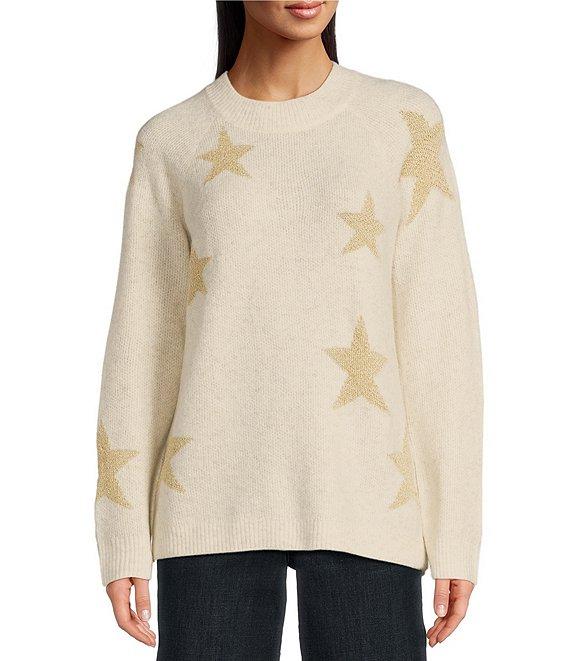 From Tru Luxe, this pullover features: Metallic lurex star print Crew neckline Long ribbed cuff sleeves Pullover construction Approx. 25" length Acrylic/polyester/nylon/wool/spandex Machine wash, dry flat Imported.