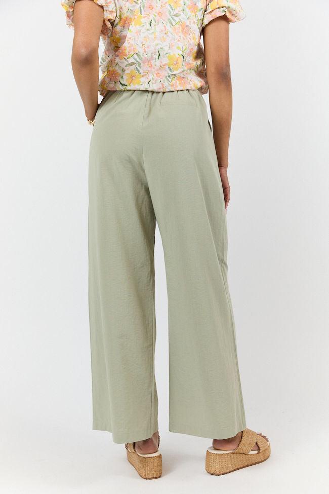 Details Green Pull On Wide Leg Trousers Fabric only has stretch in elastic Drawstring elastic back waistband, functional front pockets, zipper button closure Unlined Size small inseam: 26" Material and Care 45% cotton 42% rayon 13% nylon Hand wash cold, no drum drying Patterns may vary Materials may have natural variations Colors may vary from different viewing devices.