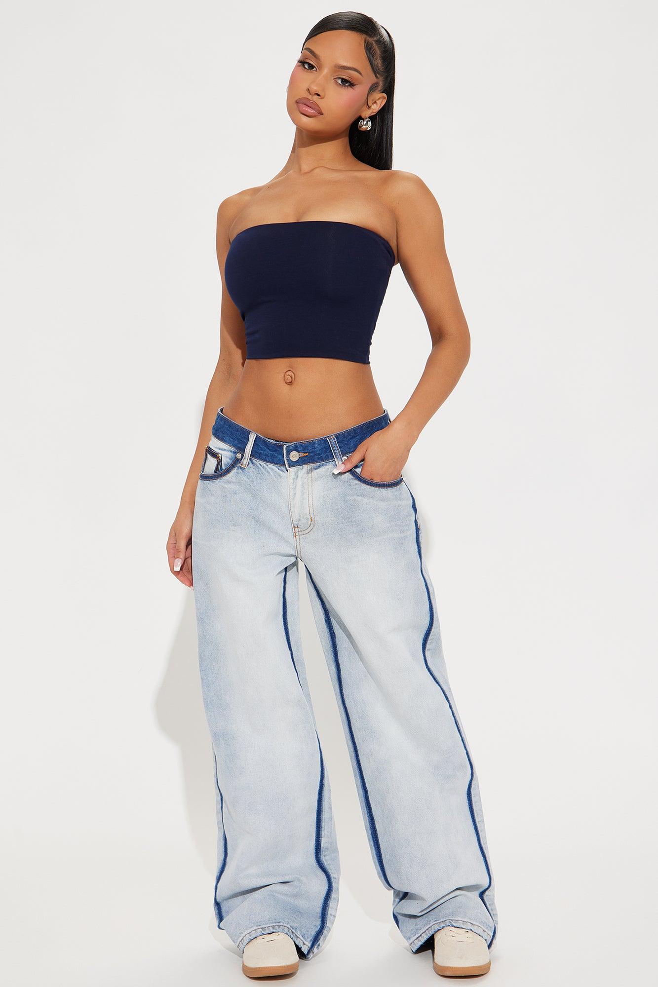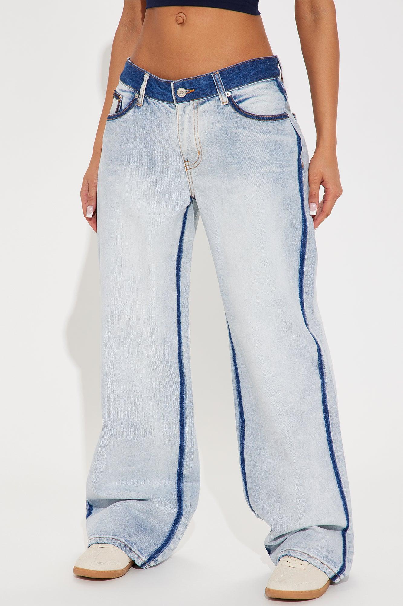 True Desires Two Tone Non Stretch Straight Leg Jeans - Light Wash