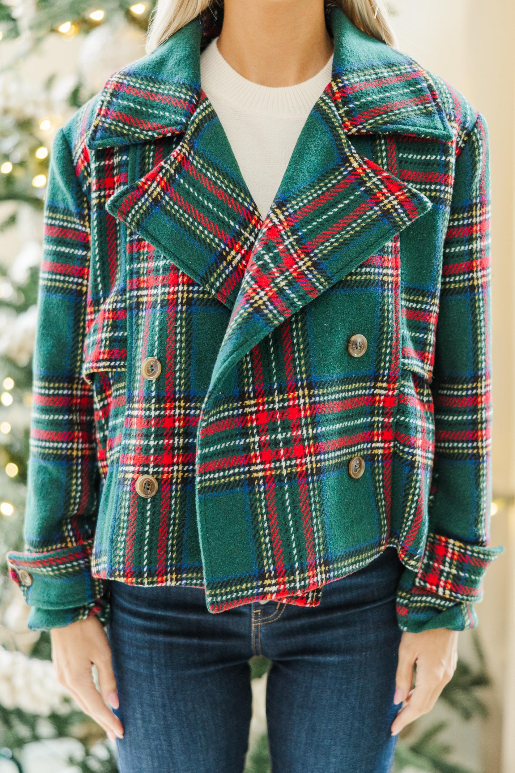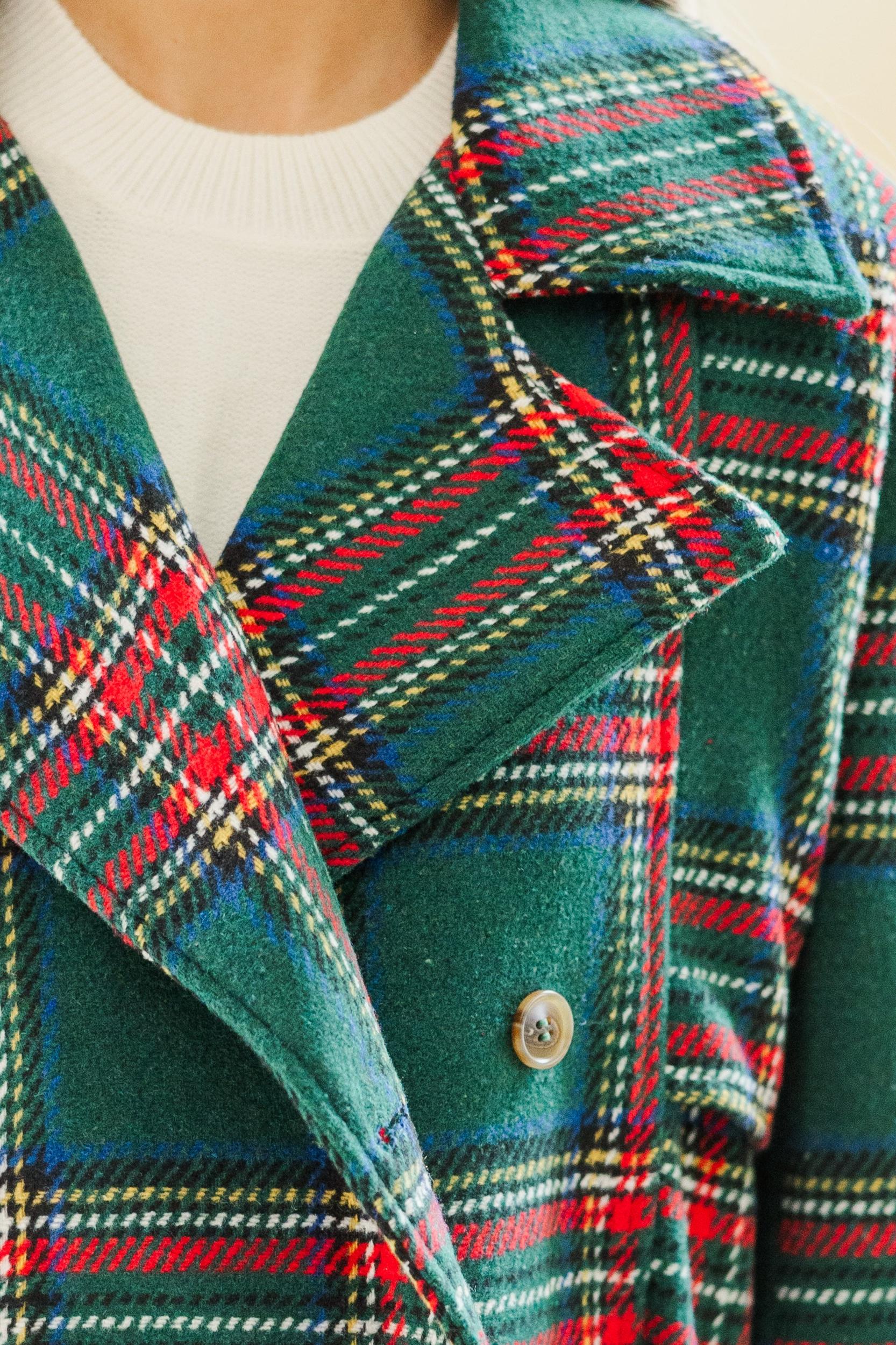 You are absolutely going to love this coat! That plaid print and those hues are perfect for the season and we love the cut! This coat is going to look great on you this holiday season! Lapel front Button front closure Long sleeves Plaid print No stretch Baileigh is wearing the small.
