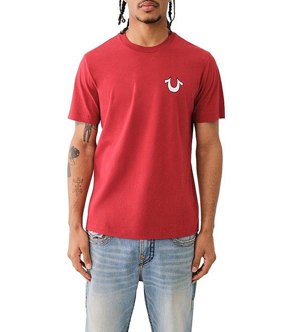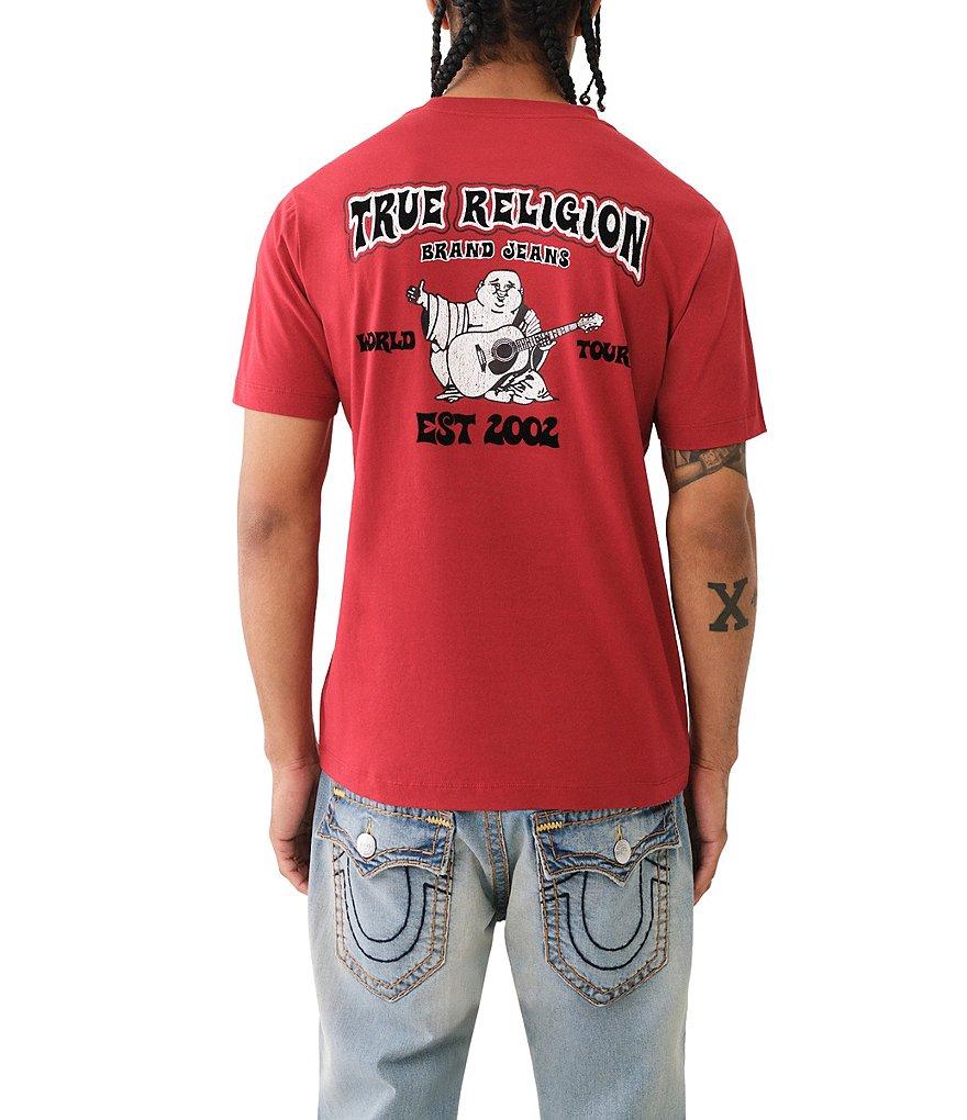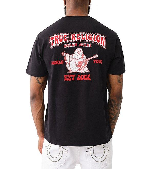 From True Religion, this T-shirt features:Relaxed fitCrew necklineShort sleevesSmall logo on the left side of chestLarge graphic on the backPullover constructionCottonMachine wash/tumble dryImported.