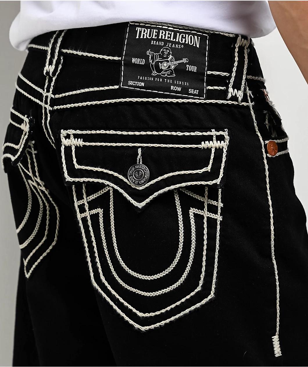 Landing in a relaxed fit, True Religion introduces the Bobby shorts in a black denim construction with bold white Rope-like Stitching throughout for an eye-catching streetwear look. Built for sunny weather, the stylish jorts employ five pockets for s