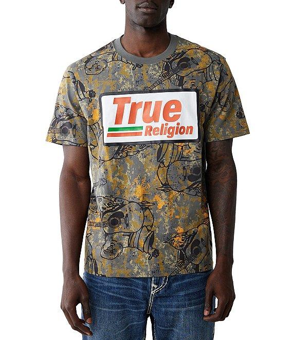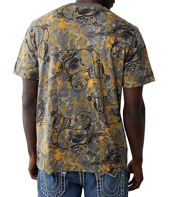 From True Religion, this t-shirt features: Allover Buddha/camouflage print Crew neckline Short sleeves Rectangular-shaped graphic with "True Religion" logo detail on the front Pullover styling Cotton Machine wash/tumble dry Imported.