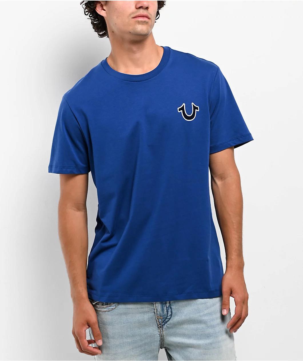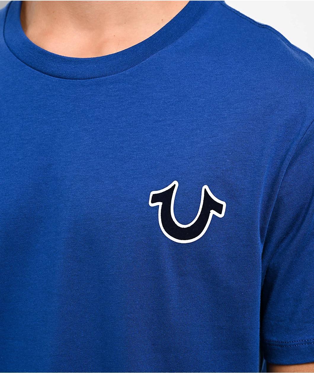 Add a classic Y2K touch to any outfit with the Buddha Logo t-shirt from True Religion. Arriving in a Cobalt blue, the tee showcases horseshoe branding on the left chest with brand script and a Buddha Logo on the back. Both designs feature flocked det