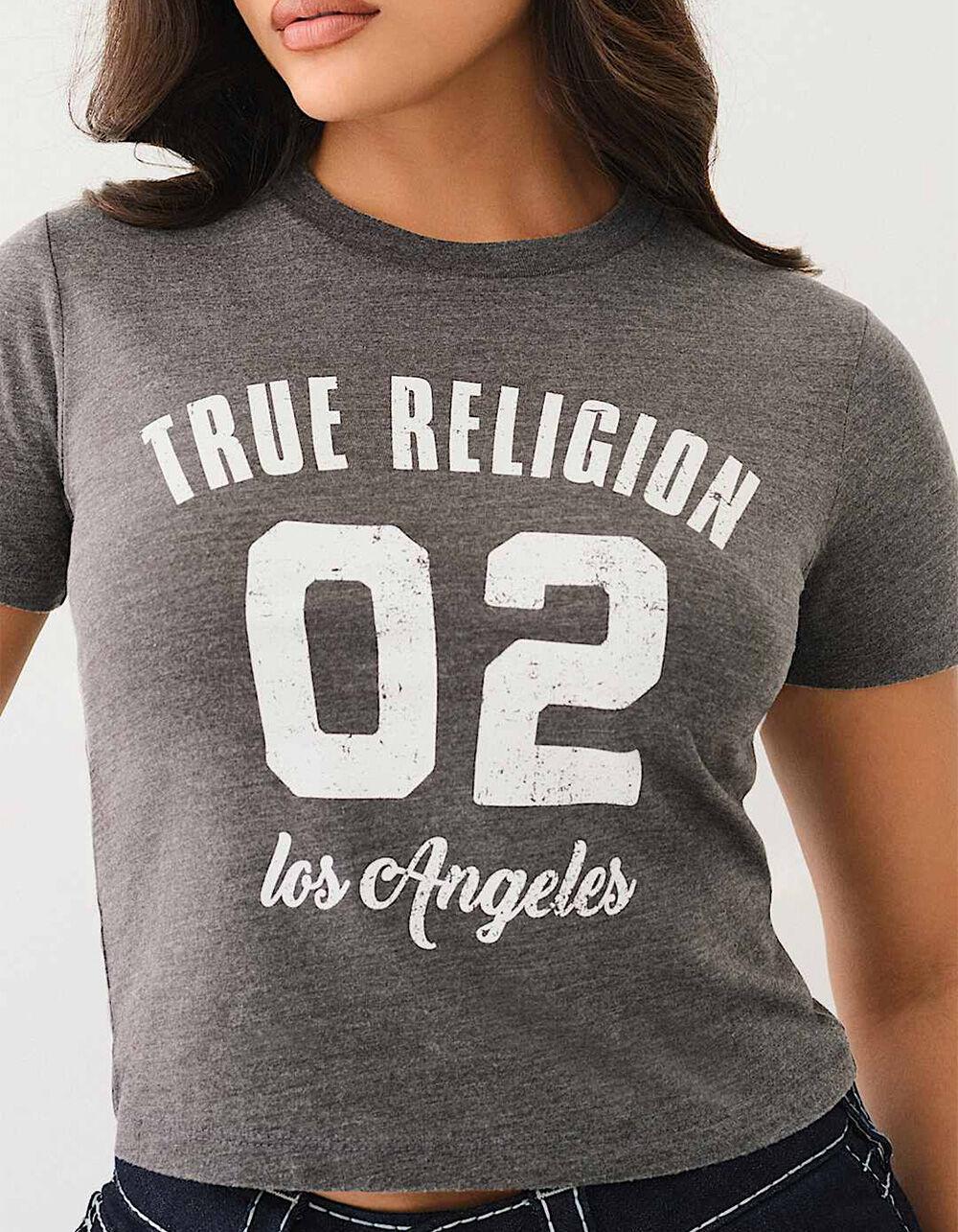 TRUE RELIGION LA Burnout Womens Baby Tee - GRAY