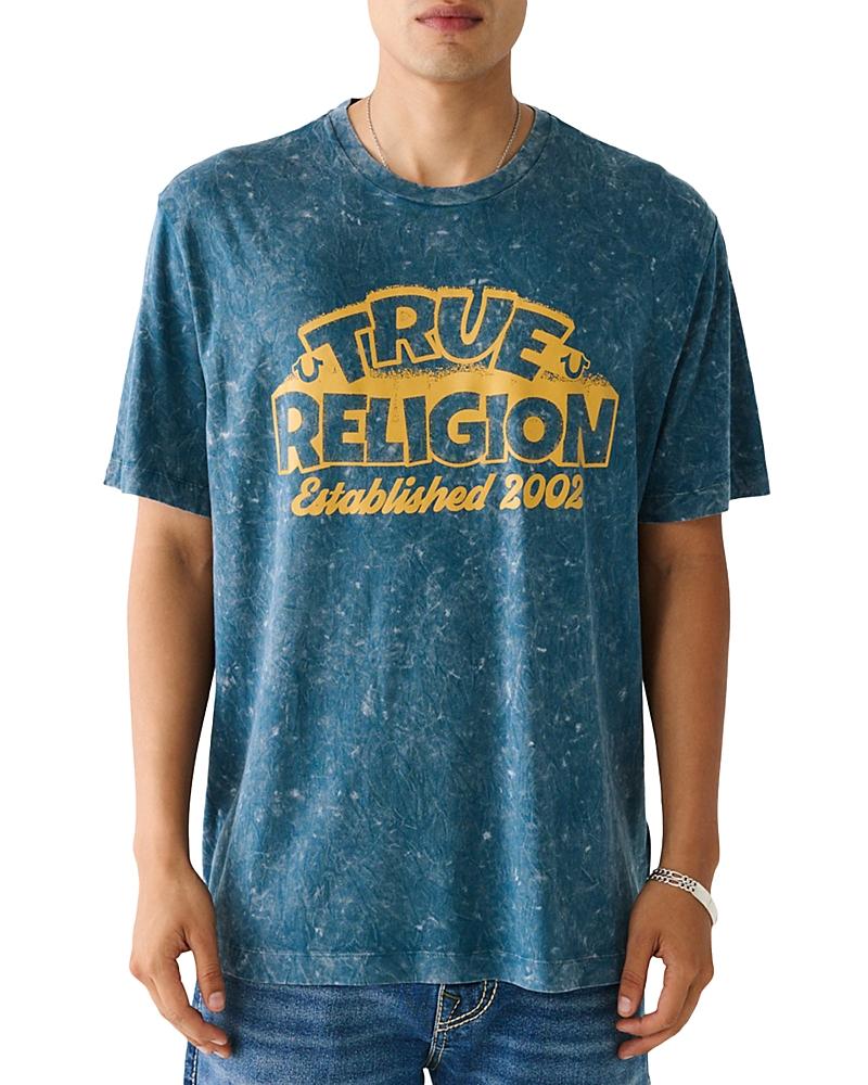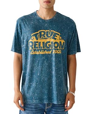 The True Relaxed Tee is your new fave t-shirt. Designed from comfy 100% cotton, this short sleeve men's t-shirt features a crewneck and boxy relaxed fit. Finished with a cool True Religion lettering graphic across the front.. Men's True Relaxed Tee Petrol Blue Size X Small True Religion.