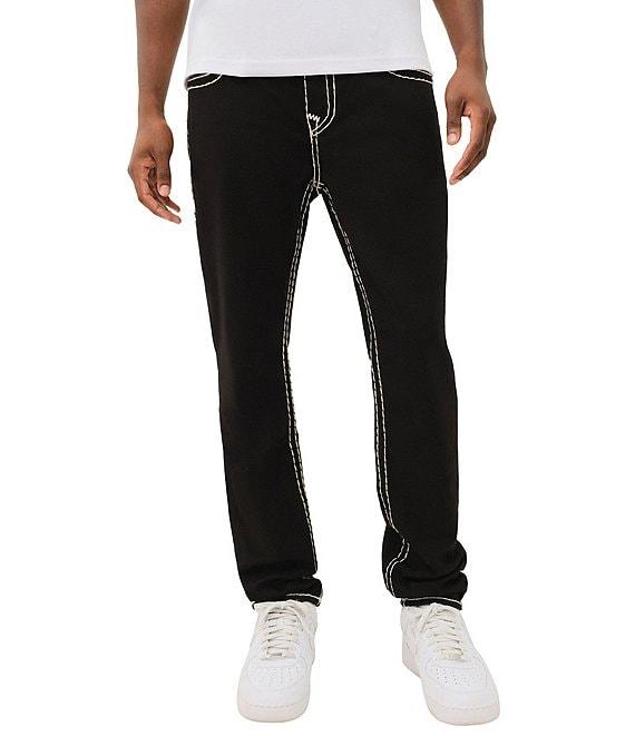 From True Religion, these jeans feature: Two front pockets (one with a coin pocket) Horseshoe detailing on the back pockets Contrasting Super-T stitching Burnished hardware Zip/button-front closure Belt loops 32" inseam Cotton/spandex denim Machine wash/tumble dry Imported.