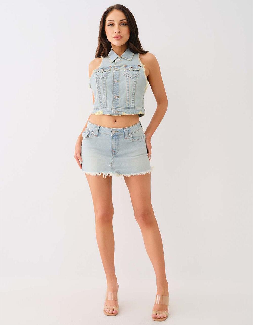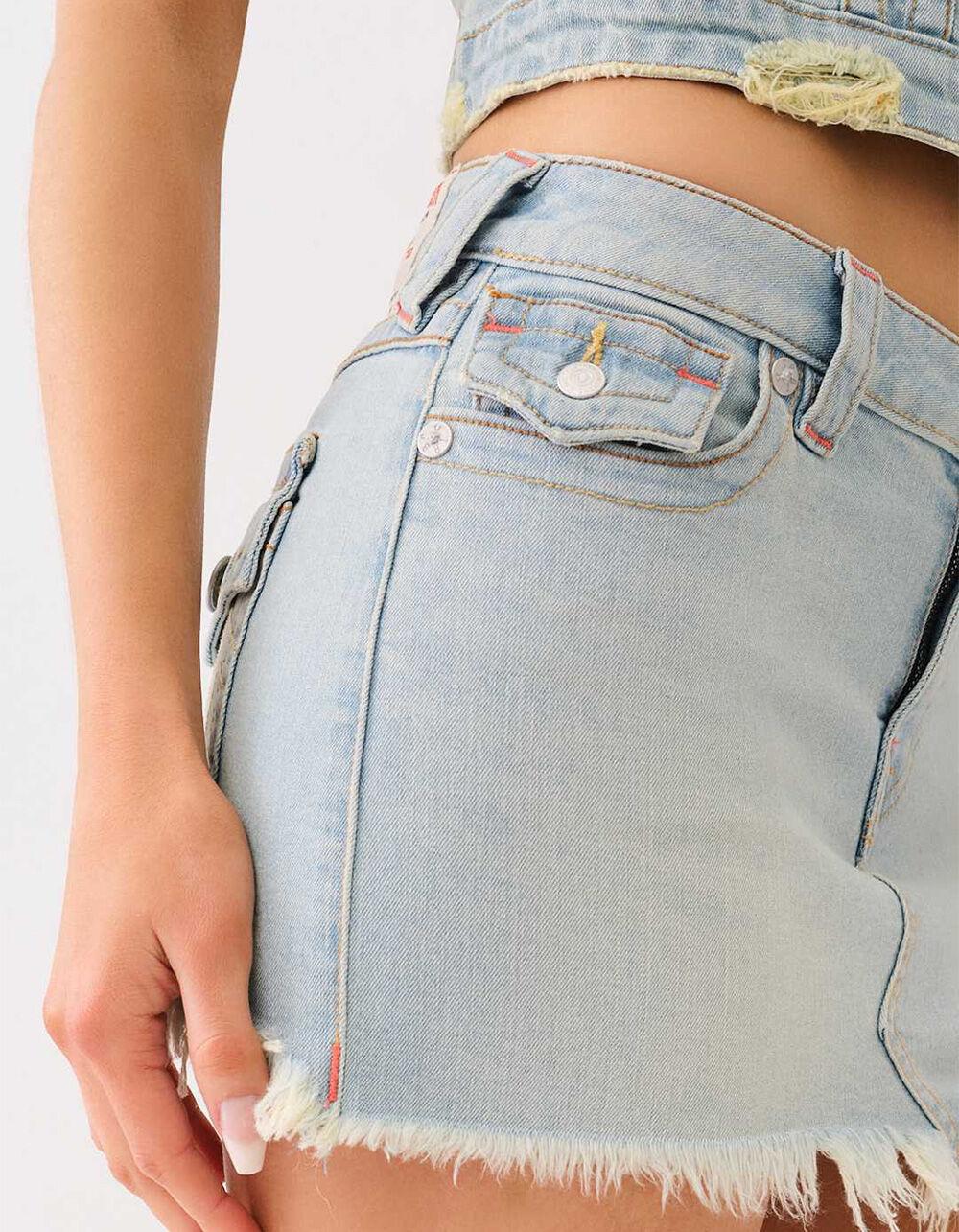 TRUE RELIGION Sadie Frayed Womens Mini Skirt - LIGHT WASH