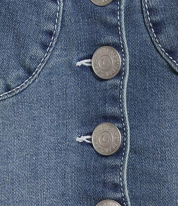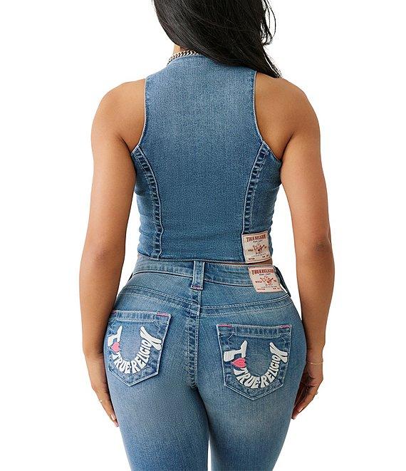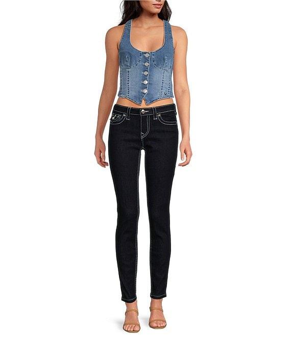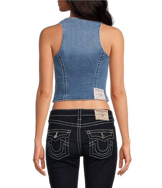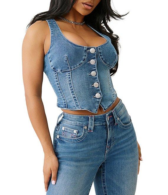 True Religion Stretch Denim Scoop Neck Button Front Corset Top