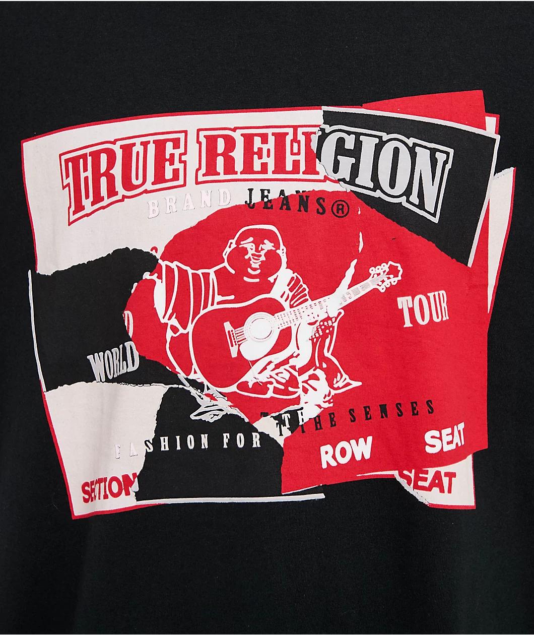 From the folks at True Religion, the Torn t-shirt lands in a black cotton construction with a multicolored brand graphic printed on the front. Designed to look like ripped-up ticket stubs, the chest displays bold branding above the iconic Buddha log
