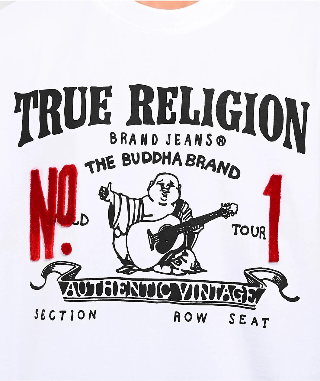 Adopt a Y2K vibe with the heavyweight Vintage No.1 t-shirt from True Religion, arriving in a casual white colorway. Classic branding adorns the chest for a vintage look, with No.1 script in a velour-like high-pile embroidery adding a red pop of color