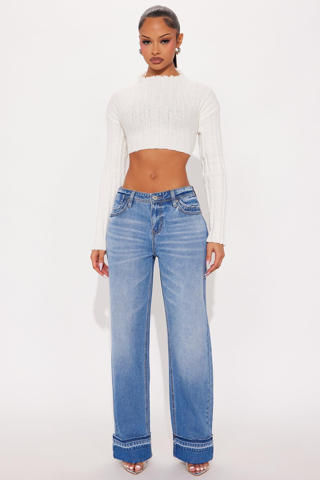 Available In Medium Wash. Straight Leg Jean 5 Pocket Coin Pockets Tacked Cuff Hem Release Hem 10" Rise 31" Inseam Non Stretch Disclaimer: Due To The Specialized Wash Process, Each Garment Is Unique. Self : 100% Cotton Imported California Proposition 65WARNING: Cancer and Reproductive Harm - www.P65Warnings.ca.gov.
