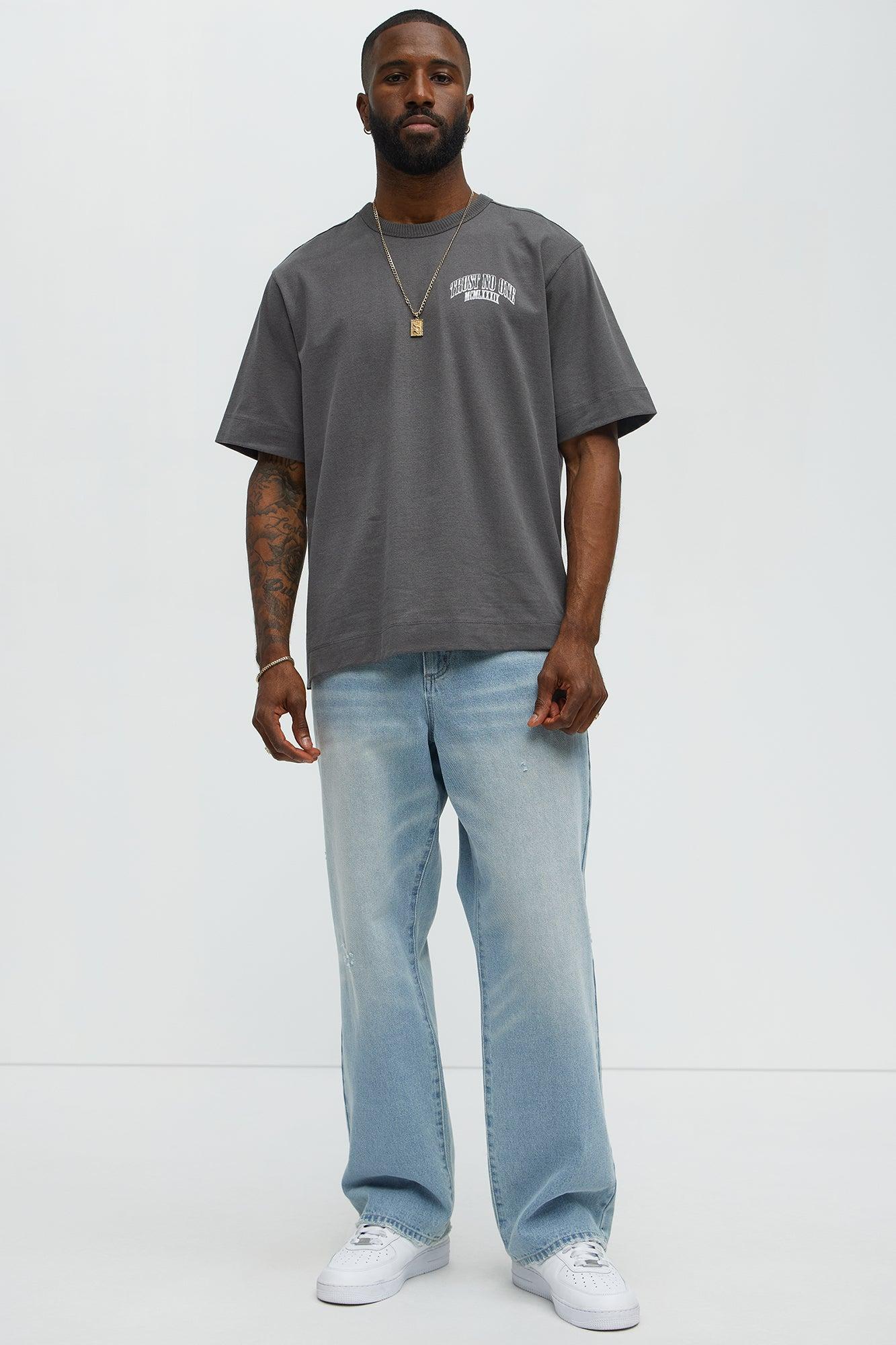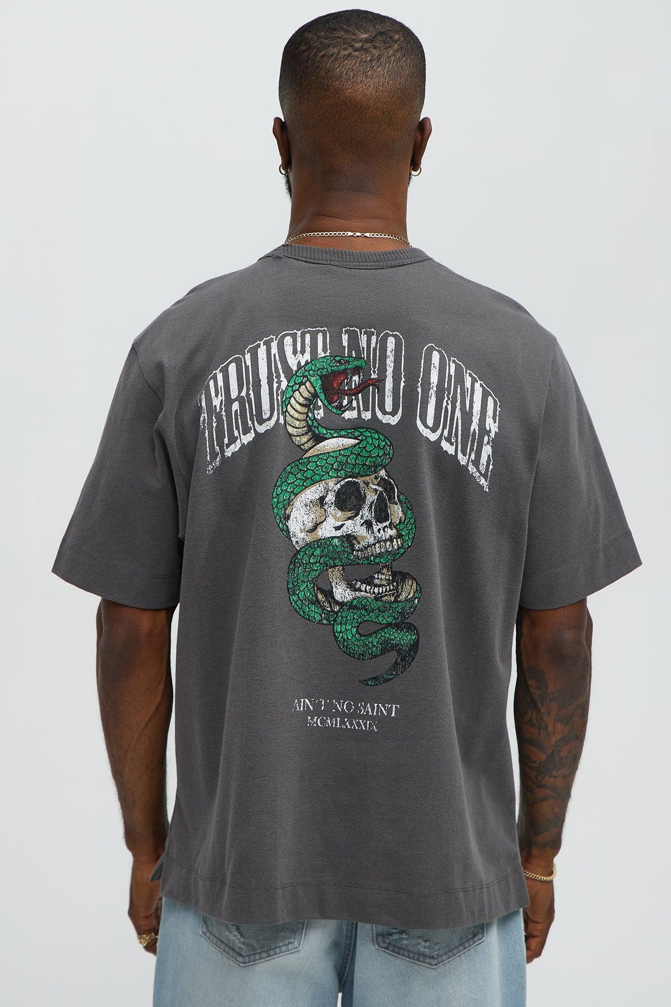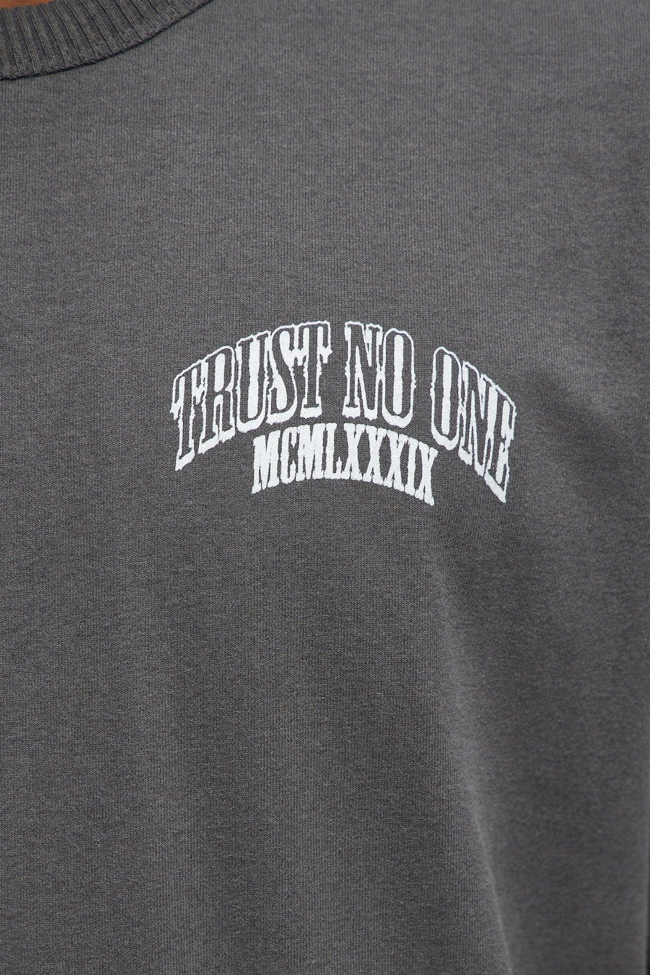 Trust No One Oversized Short Sleeve Tee - Dark Grey Male
