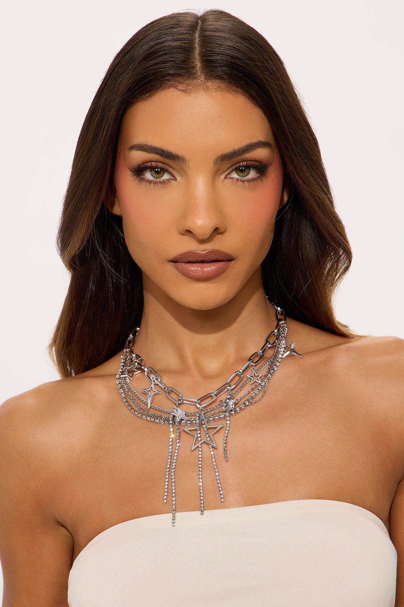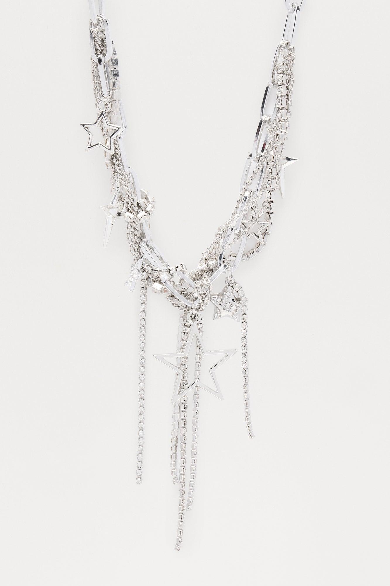 Trust The Stars Fringe Layered Necklace - Silver Female