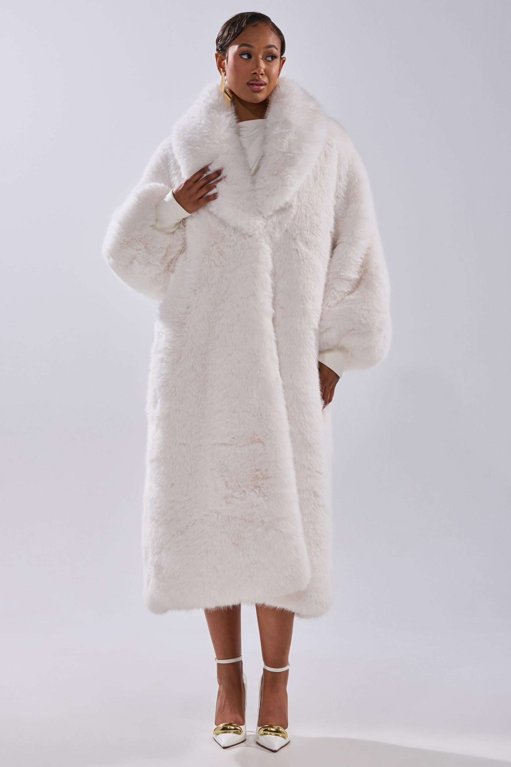 The AKIRA Label Tsunami Faux Fur Coat in White is a wave of pure drama. Crafted from ultra-fluffy, high-pile faux fur, this extravagant coat features an oversized shawl-style collar, long sleeves with ribbed knit cuffs, on-seam waist pockets, concealed front hook-and-eye fastenings, and satin interior lining. Complete with a full-coverage, longline silhouette to keep you cozy and chic in the cold days ahead. - Faux Fur: 100% Polyester, Lining: 100% Polyester- Dry Clean Only- No Stretch- Imported (all measurements approximate from size S/M)- 50” Shoulder to Hem- 17” Shoulder to Shoulder- 23” Sleeves- Model is 5’11” and is wearing size S/MProduct ID: 1064911 (all measurements approximate from size 1X/2X)- 52” Shoulder to Hem- 19” Shoulder to Shoulder- 26” SleevesProduct ID: 1064913